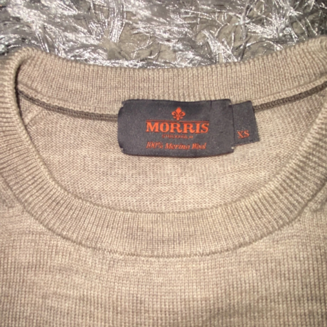 Snygg beige tröja från Morris i merinoull. Klassisk rund halsringning och diskret logga broderad på bröstet. Långärmad modell med ribbade muddar och nederkant. Perfekt för lager-på-lager och stilren look. Kom privat för mer info och pris!