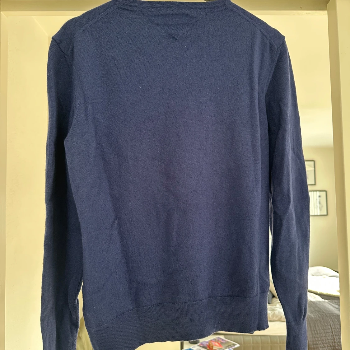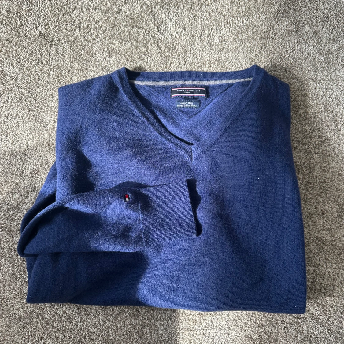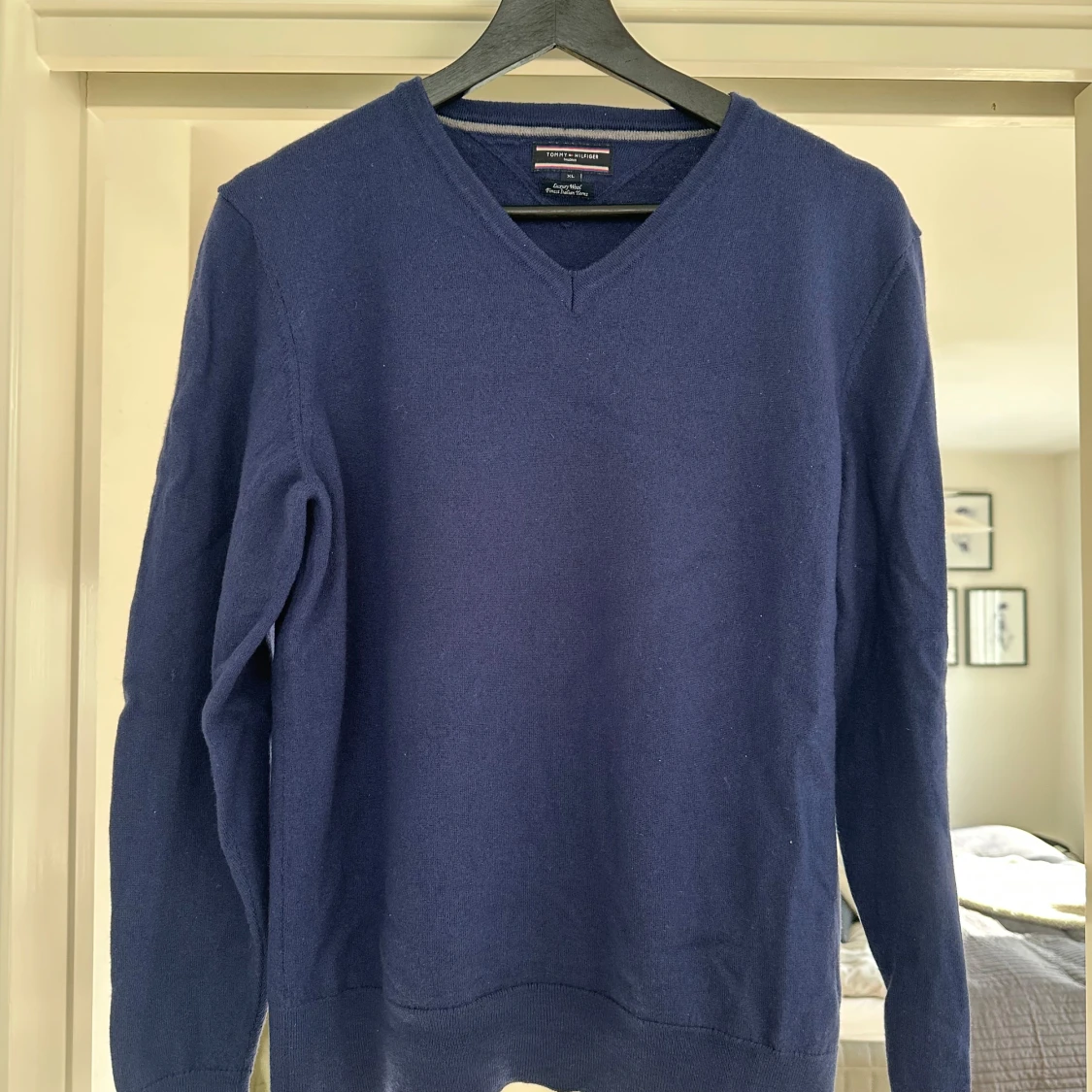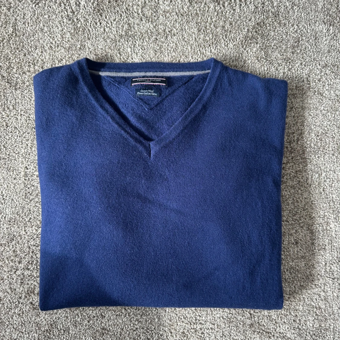 Säljer en stilren blå v-ringad tröja från Tommy Hilfiger. Tröjan är i nyskick och sparsamt använd. Tröjan är i 100 % merinoull. Storlek xs, pris 249. Skriv vid frågor.