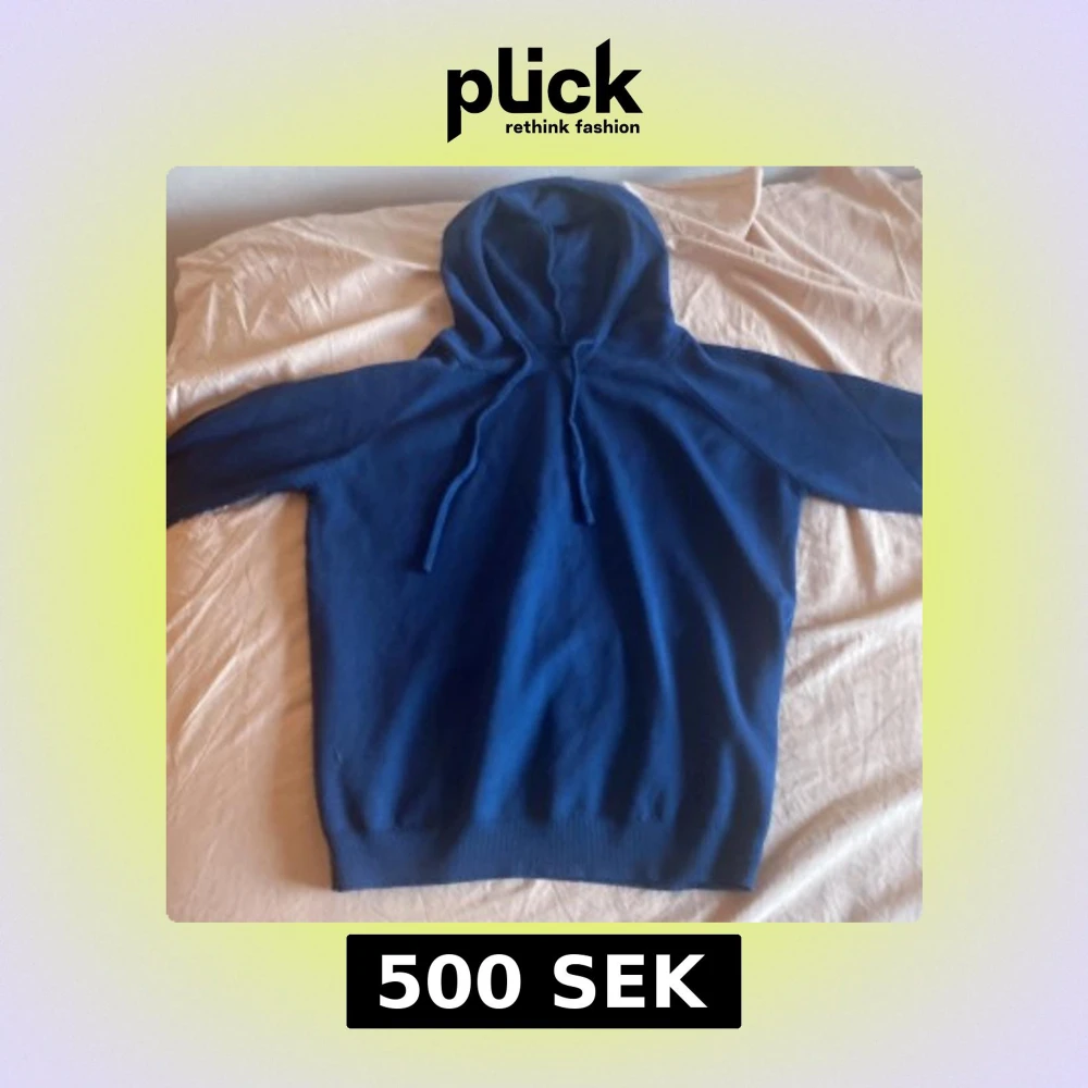 En stilren mörkblå hoodie med huva. Har använt i en dag var för liten