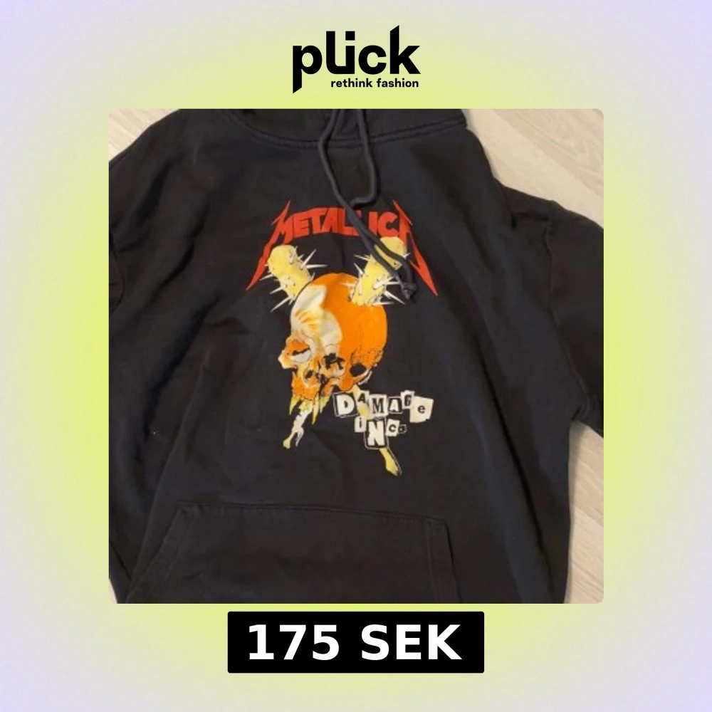 Svart hoodie med Metallica Damage Inc.-tryck fram och turnédatum bak. Stor färgglad dödskalle med orange och gult motiv på bröstet, röda Metallica-bokstäver och snörning i huvan. Perfekt för dig som älskar bandmerch och vill sticka ut.