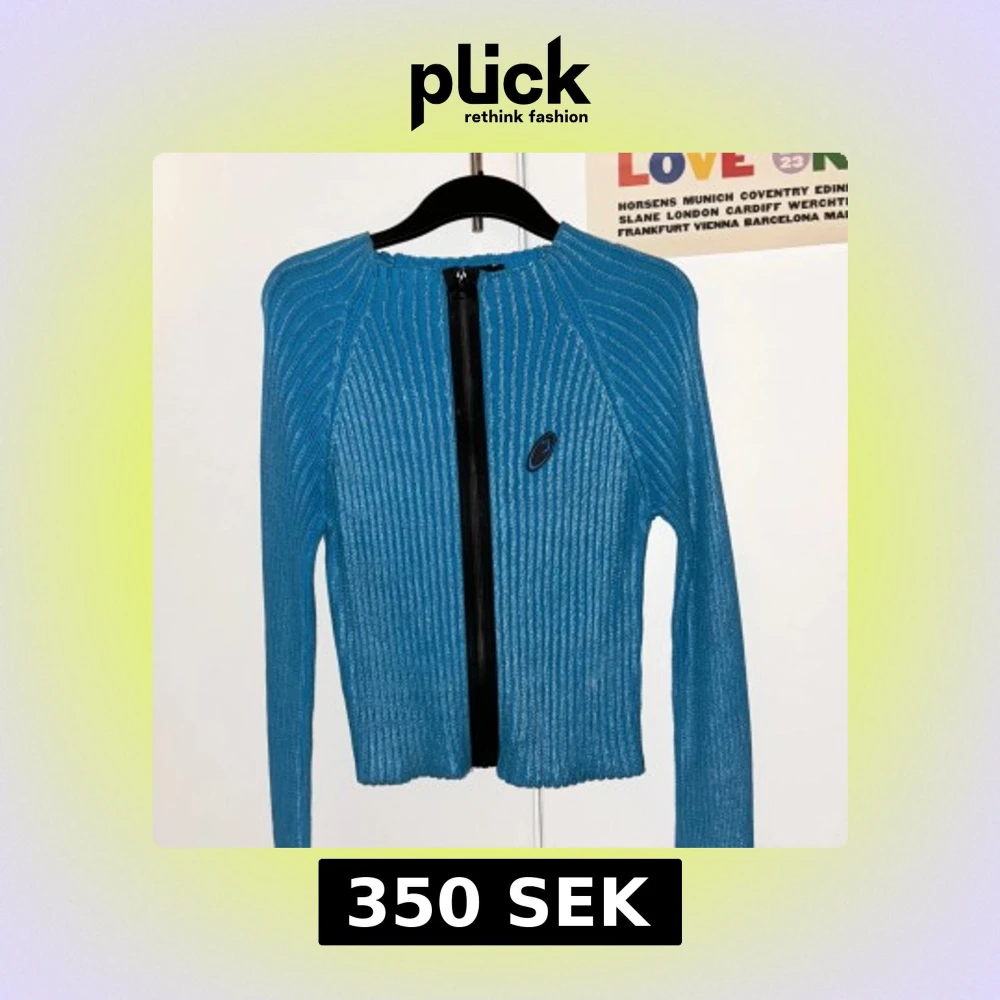 Säljer en blå, metallic Jaded London Cardigan i storlek L. Koftan har en svart dragkedja framtill, långärmad design och ett litet märke på bröstet. Materialet är stickat och ger en snygg struktur. Perfekt för dig som gillar coola detaljer och färg. obs! väldigt långa armar (går snyggt att vika upp för en annan look) 🪩🤍🩵