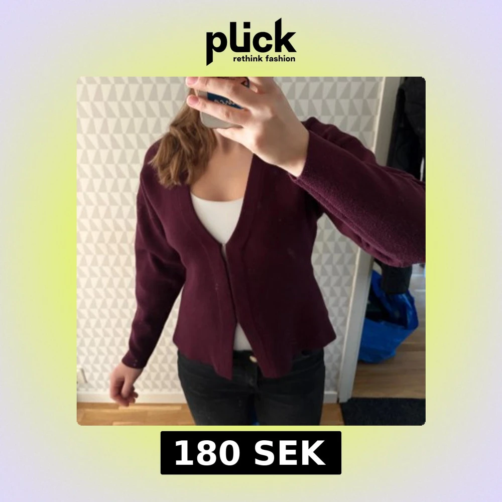 Vinröd kofta med v-ringad hals och knäppning framtill. Långärmad och i mjukt, stickat material. Bra skick! Stork M. Köptes utan lapp via vinges så oklart vilket märke det är, men Zara och Nelly har en liknande kofta🤗