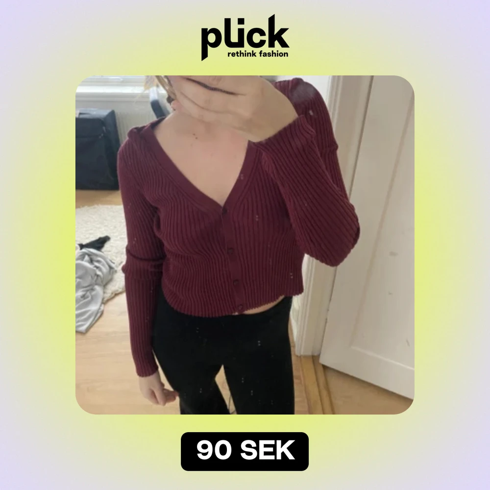 Säljer denna helt oanvända koftan från h&m, prislappen sitter kvar på! Den är i en vindröd jättefin färg