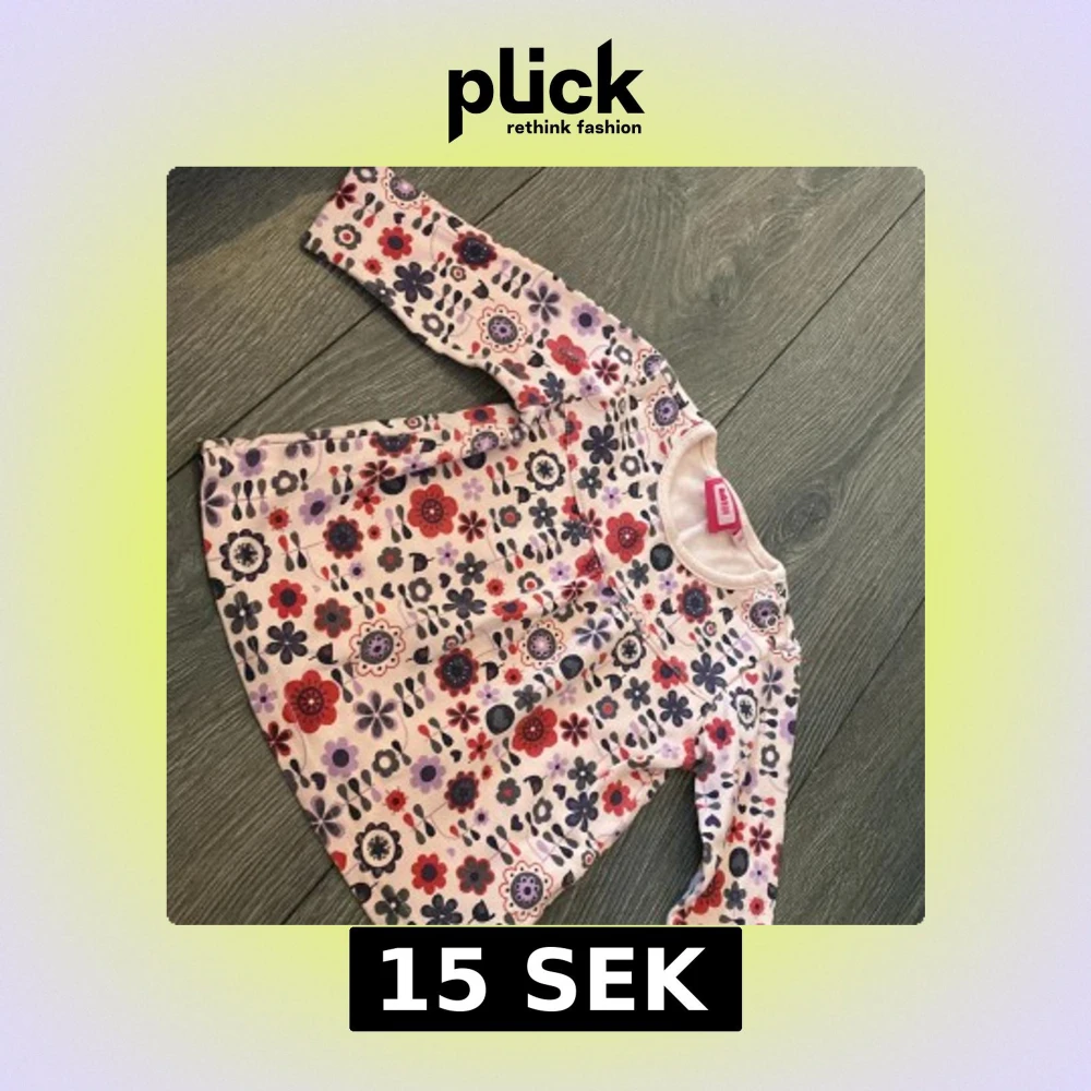Supersöt långärmad tröja från MINI i storlek 74. Tröjan är ljusrosa med blommigt mönster i rött, lila och mörkblått. Tillverkad i mjuk bomull och har praktiska tryckknappar vid axeln för enkel påklädning. Perfekt för vår och höst!