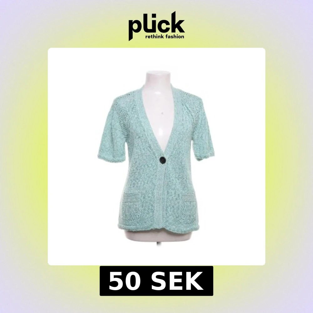 Säljer en mintgrön stickad kofta från Canda Premium. Koftan har korta ärmar, djup v-ringning med en stor knapp framtill. Två fickor framtill och den passar perfekt till sommaren! Superfin💞