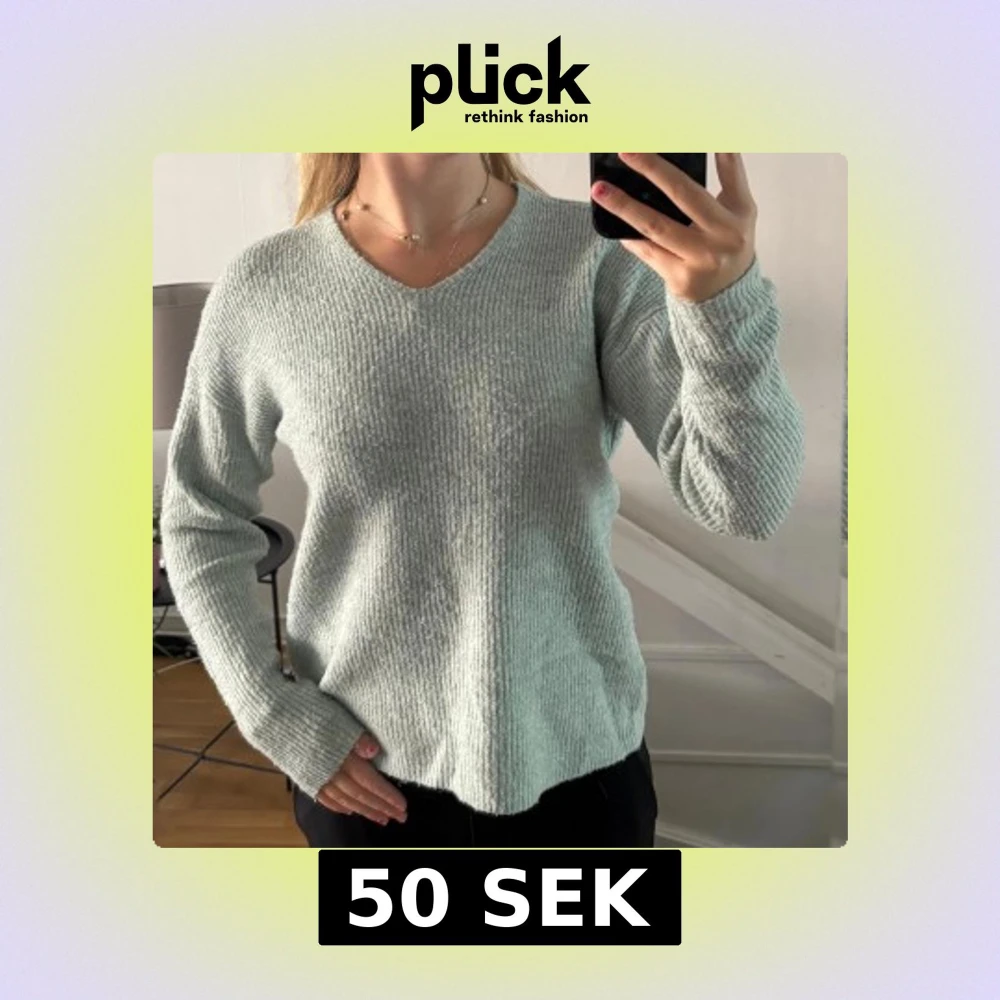Mysig mintgrön stickad tröja från ONLY med v-ringning och lång ärm. Tröjan har en ribbad struktur och en relaxed, normal passform🫶🏻Storlek Xs