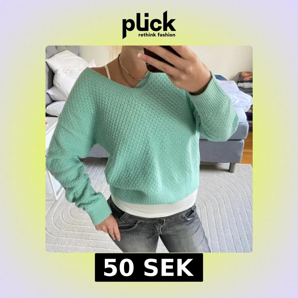 Superfin mintgrön stickad tröja med v-ringad hals och långärmade ribbade muddar. Tröjan har en loose passform och ett diskret strukturerat mönster som ger en cool vibe. Perfekt att slänga på sig när det är lite kyligt ute. Jag är 172cm och bär vanligtvis S/36 Kolla gärna in mina andra annonser och få rabatt på bundles🌸♻️