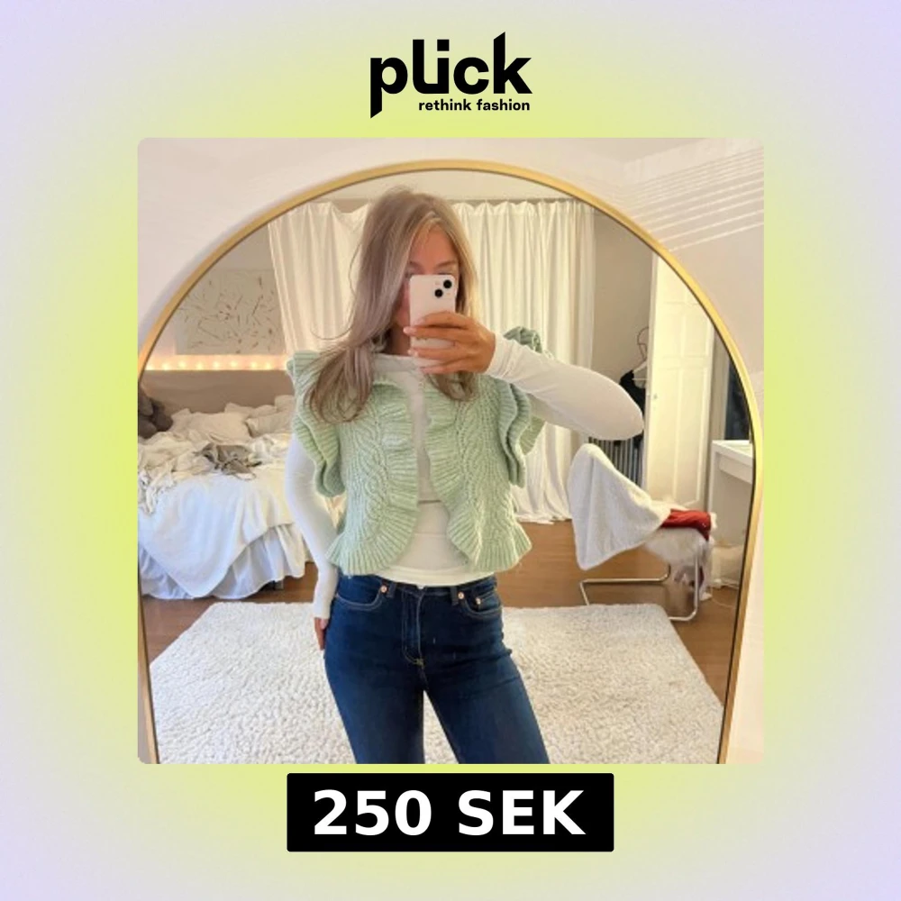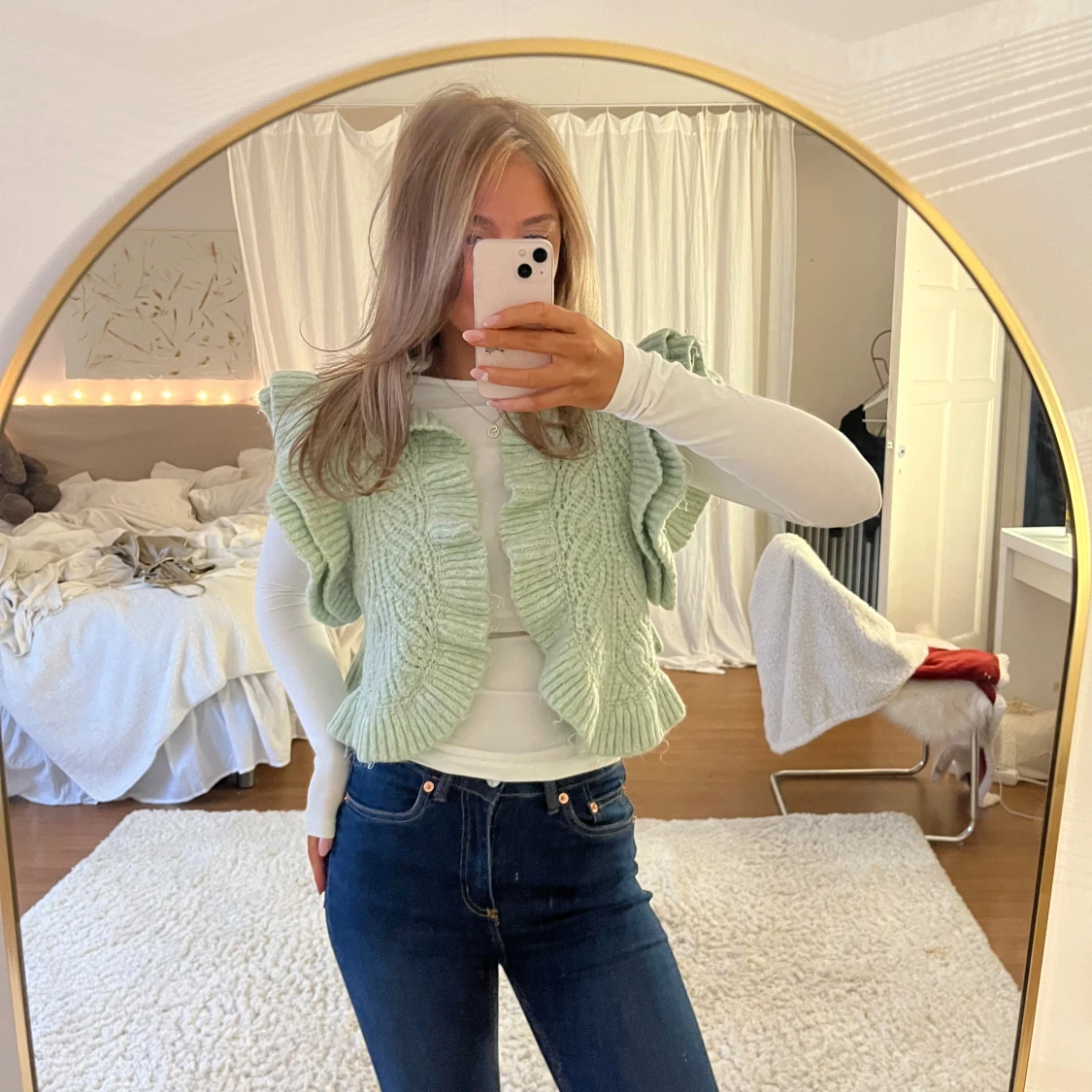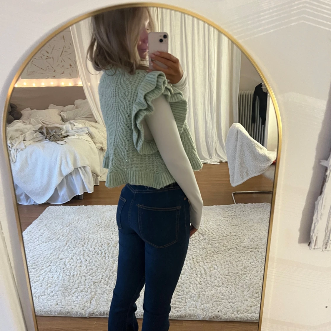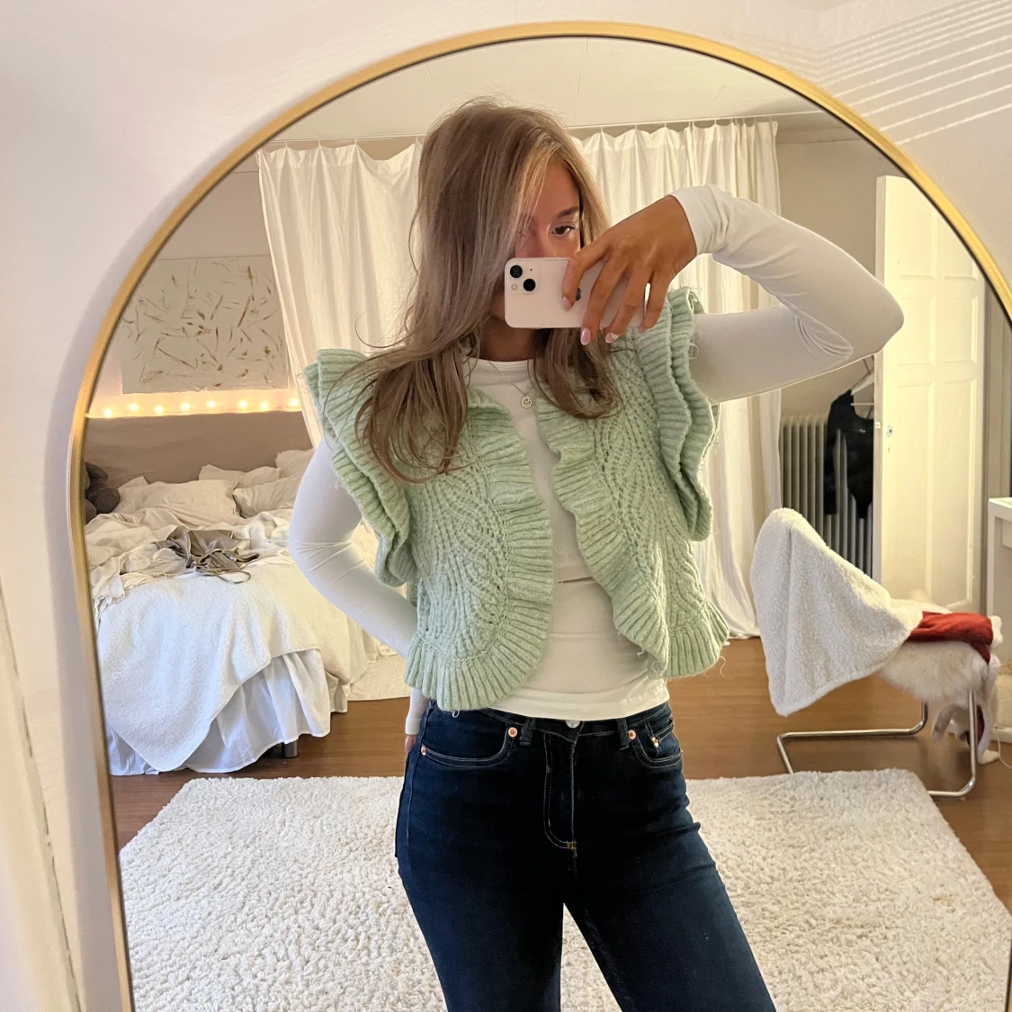 Säljer en söt mintgrön stickad väst med volangdetaljer från Zara 💚