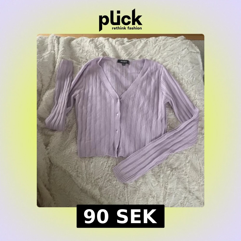Säljer en ljuslila kofta från Missguided i storlek 36. Koftan är ribbstickad med v-ringning och har långa ärmar samt knappar framtill. Materialet är mjukt och stickat, perfekt för lager på lager under vår och höst.