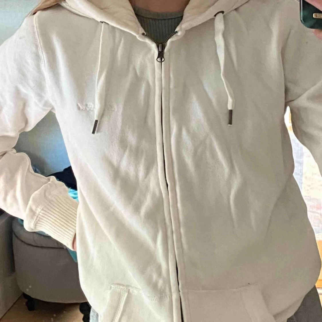 Världens skönaste huvtröja som aldrig är använd💘 har en liten vit text på axeln där det står ”on the peak”