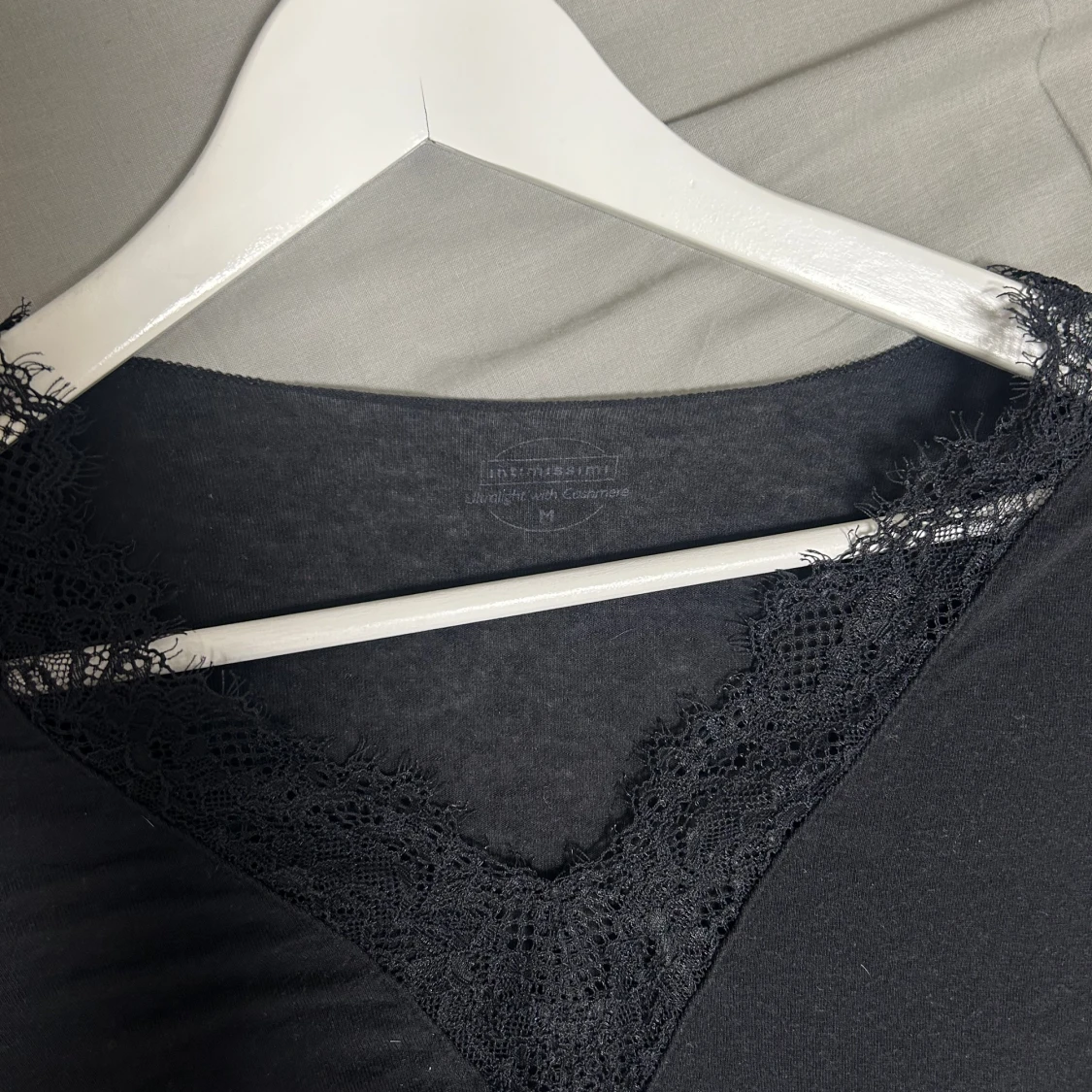 Säljer min svarta Kashmirtröja från intimissimi med spets. Storlek M, kommer inte till användning.