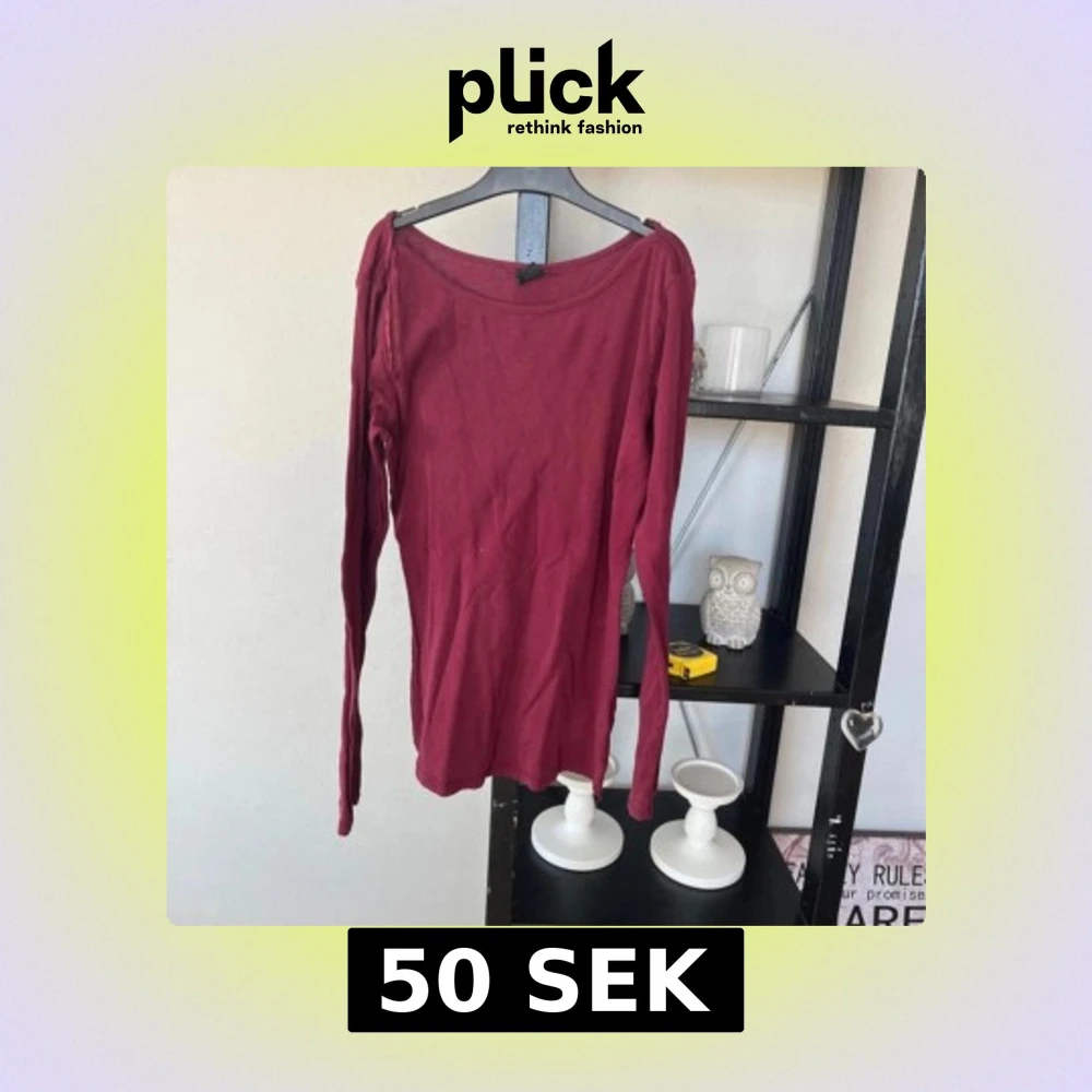 Säljer en vinröd långärmad topp med en enkel design. Perfekt för höst och vinter. Toppen har en rund hals och är tillverkad i ett mjukt material.