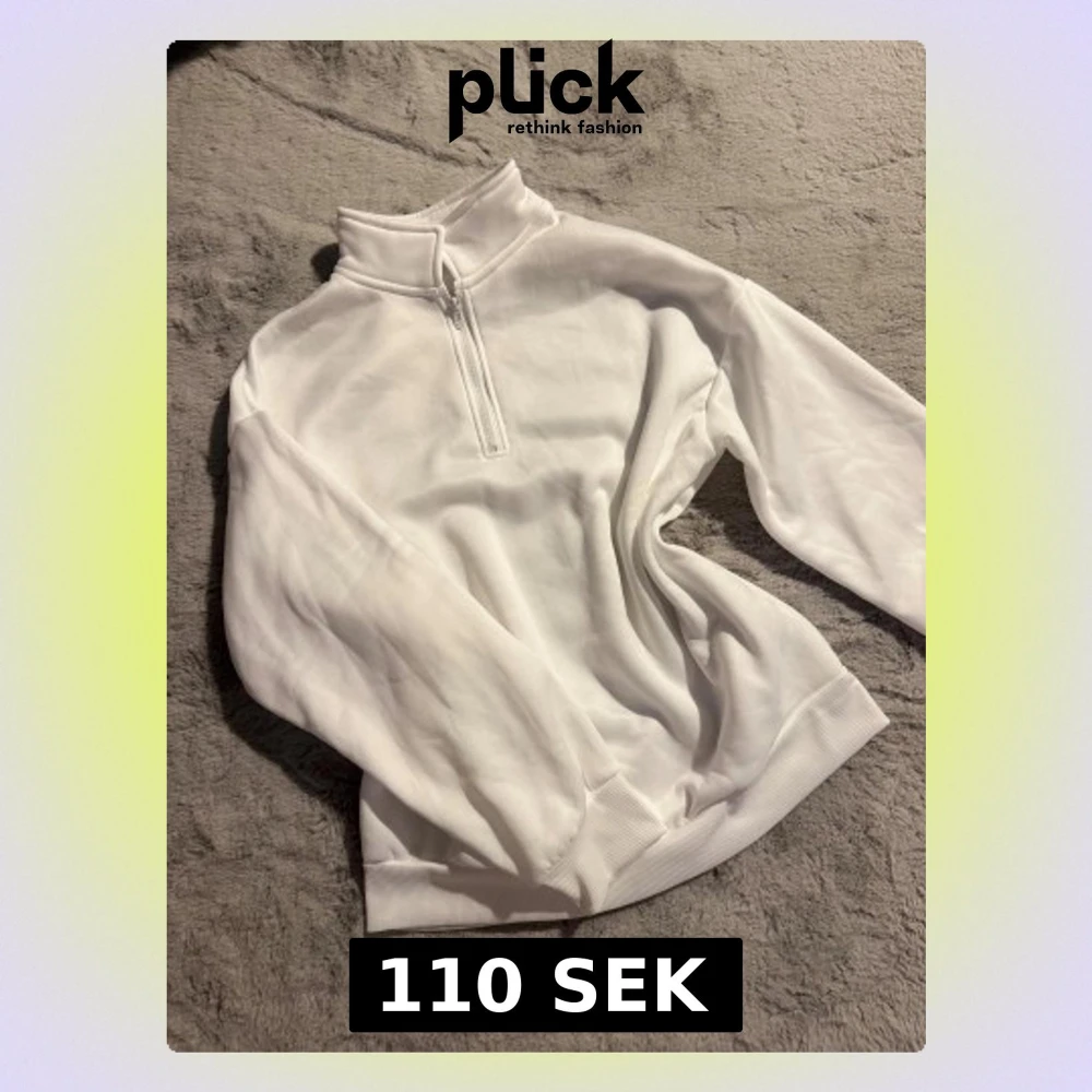 Säljer en stilren vit sweatshirt med half zip och hög krage. Tröjan har långärmade ärmar och ribbade muddar vid ärmslut och nederkant. Perfekt för dig som gillar enkel och clean stil. Materialet känns mjukt och bekvämt. Helt ny!!