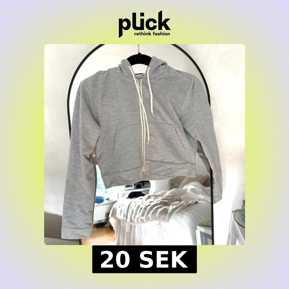 Grå croppad zip hoodie