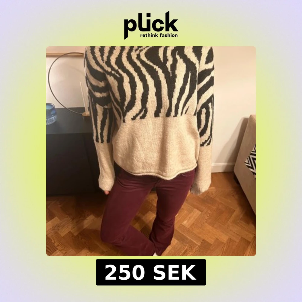 Lappen kvar! Säljer en beige stickad tröja med svart zebramönster. Tröjan har en avslappnad passform, rund halsringning och långa ärmar. Perfekt för dig som vill sticka ut med ett coolt djurmönster och ändå hålla det stilrent.