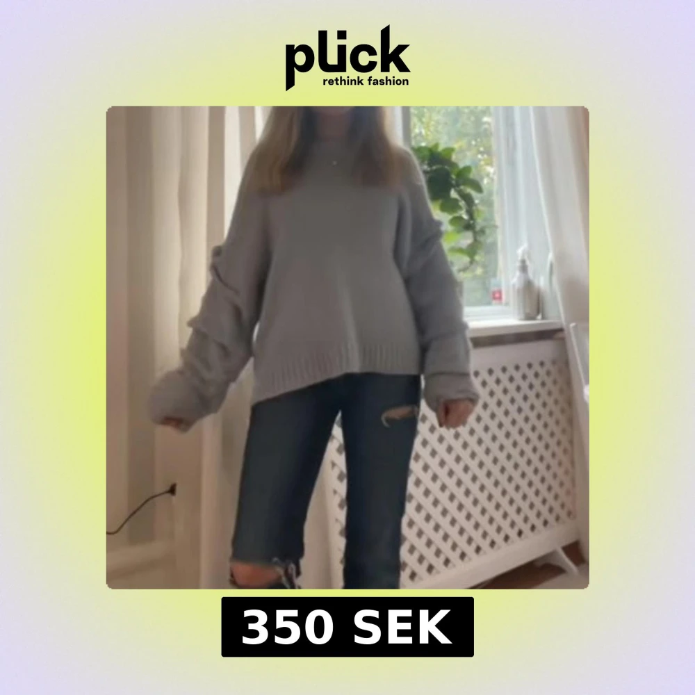Säljer en mysig grå stickad tröja med långa ärmar och ribbade detaljer vid ärmslut och nederkant. Perfekt för kyligare dagar. Passar bra till jeans eller leggings för en avslappnad look. Storlek M men passar mig som är 155 och brukar ha xs-s