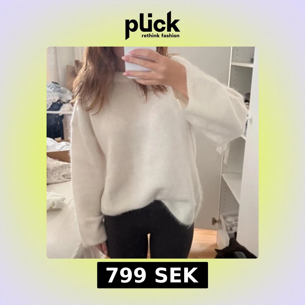 Supermjuk och oversized vit stickad tröja från H&M. Tröjan har rund halsringning, långa ärmar och en riktigt fluffig känsla. Perfekt att mysa i under kyliga dagar och passar snyggt till både jeans och leggings.