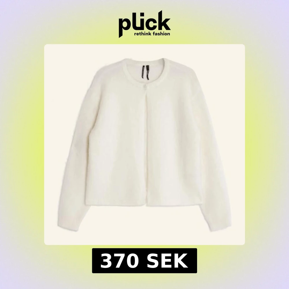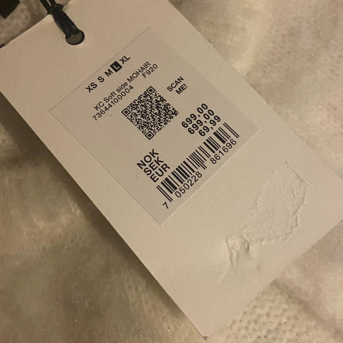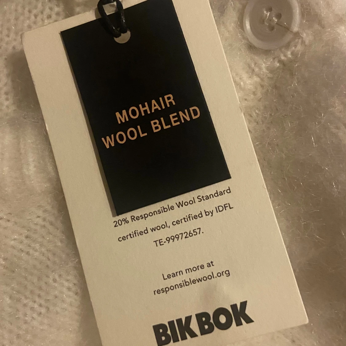 Helt ny med lapp kvar, finns fortfarande i butik för 700kr. Storlek L men känns mer som M. Jättegullig och fluffig vit kofta mohair- och ullblandning. Rund halsringning, längärmad och stängs med en knapp upptill.