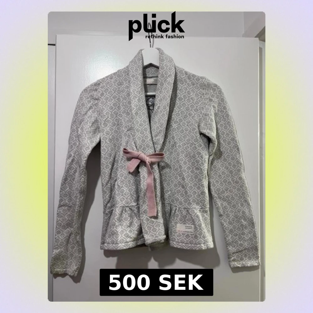 Supermysig grå kofta från odd molly med diskret mönster och en söt rosa rosett framtill. Koftan har lång ärm, mjukt material och en avslappnad krage. Perfekt för att ge din outfit en gullig touch.