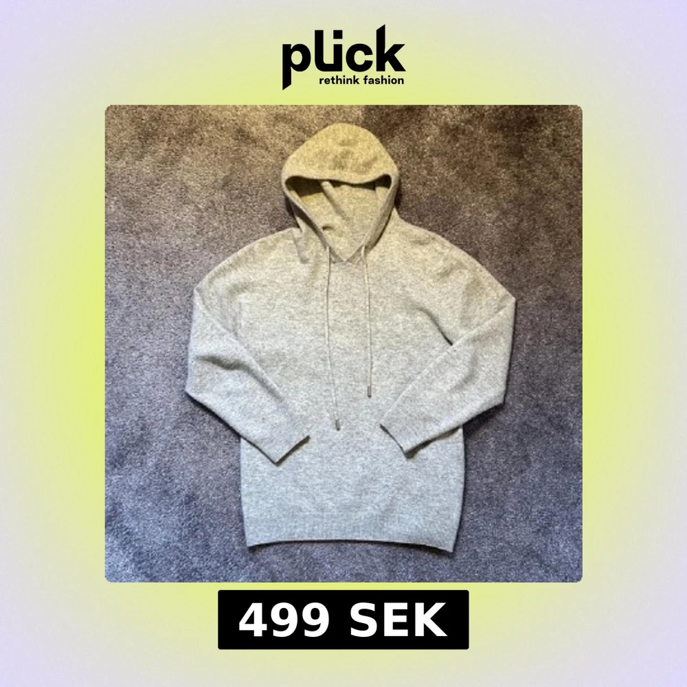 Säljer en stilren grå merinoulls hoodie med långa ärmar och justerbar huva. Perfekt för kyliga dagar och ger en avslappnad look. Storlek S.