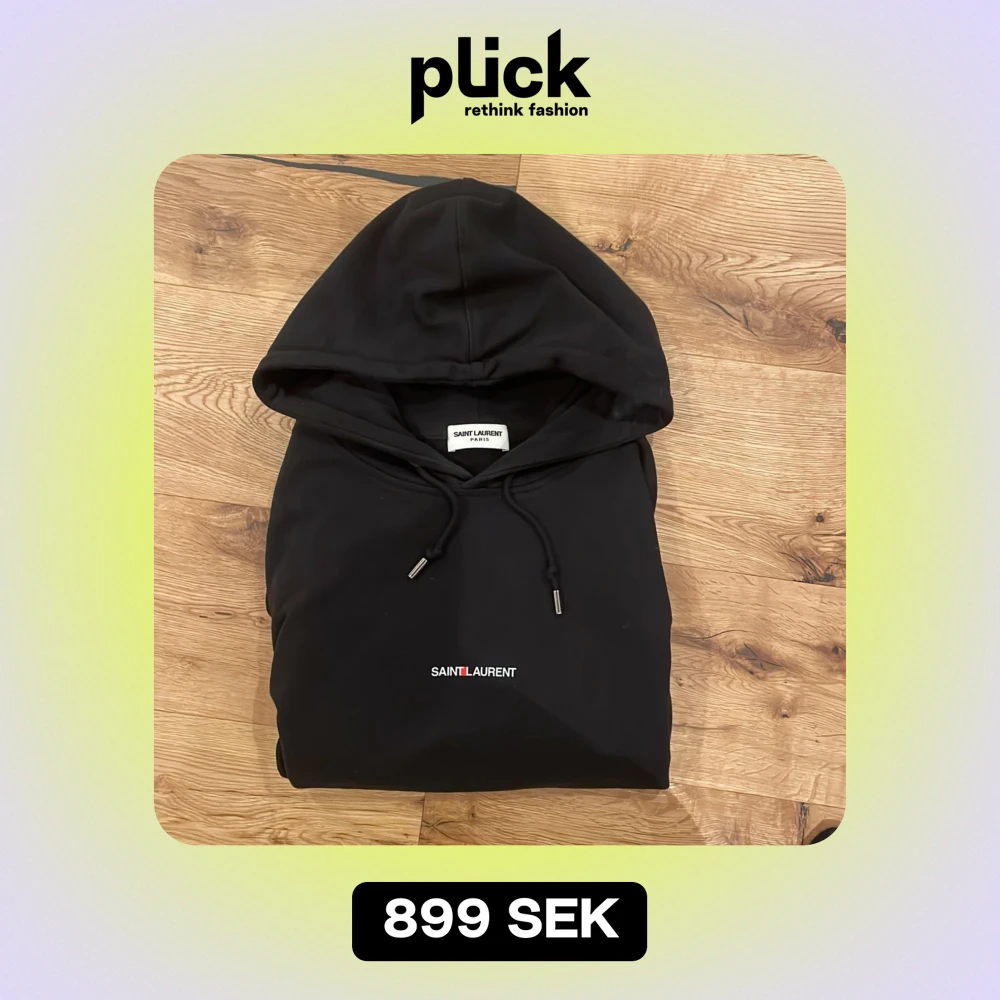 Snygg svart hoodie från Saint Laurent med logotyp framtill. Den har en klassisk design med justerbar huva och ribbade muddar. Perfekt för en stilren look.