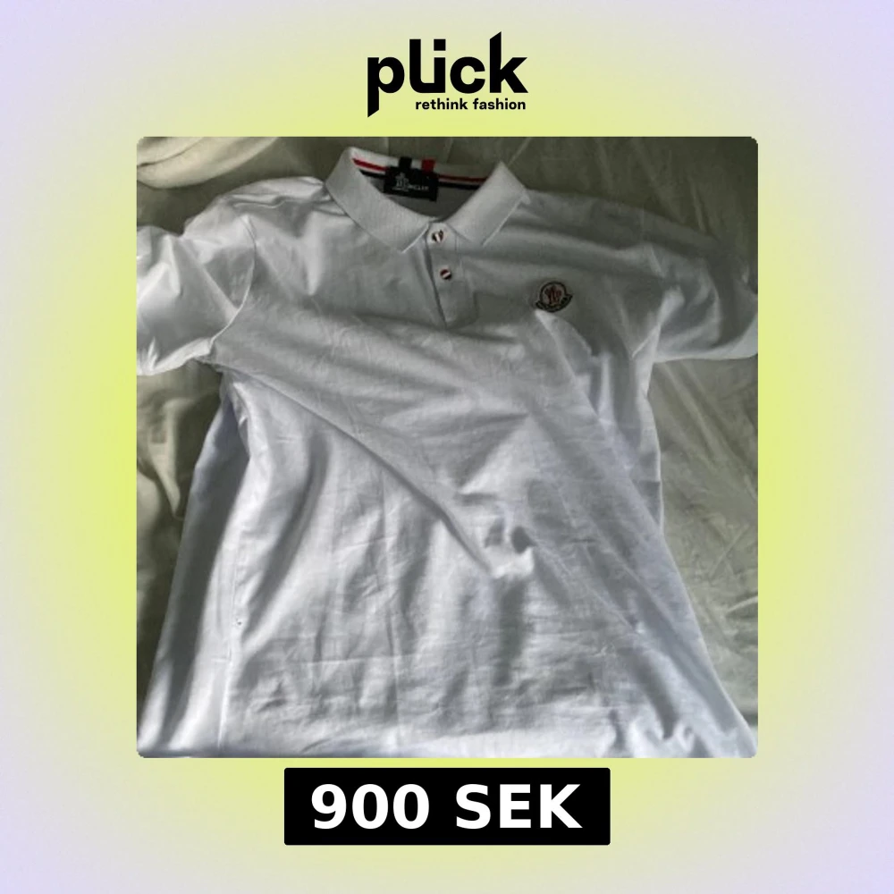 Säljer en klassisk vit pikétröja från Moncler med broderad logga på bröstet. Tröjan har krage, knappar med Monclers signaturfärger och är tillverkad i mjuk bomull. Perfekt för en clean och stilren look. Ganska liten i storlek.