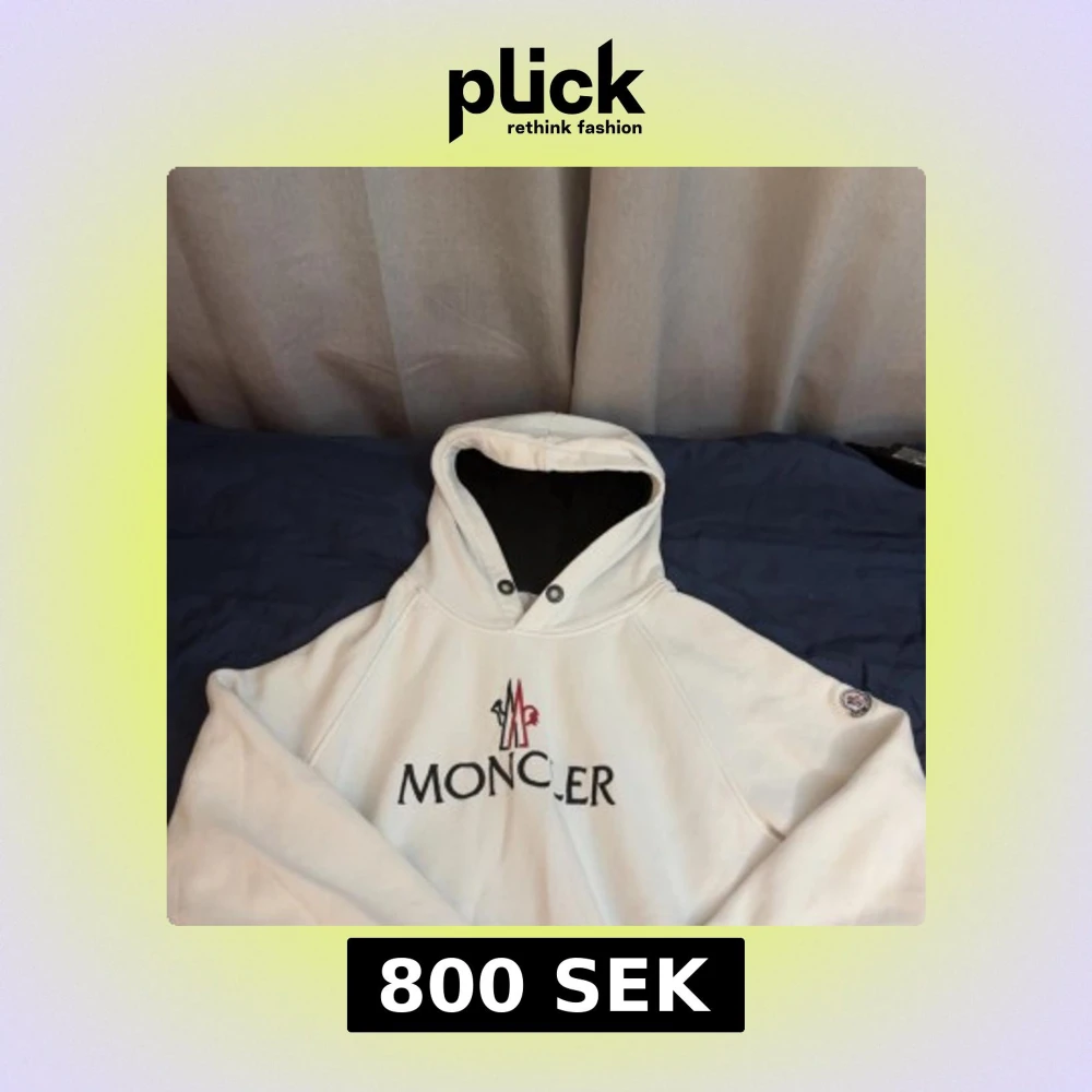 Snygg vit hoodie från Moncler med broderad logga framtill i svart och rött. Tröjan har huva med svart insida och metallöljetter, samt Moncler-märke på ärmen. Perfekt för dig som gillar streetwear och exklusiva märken.