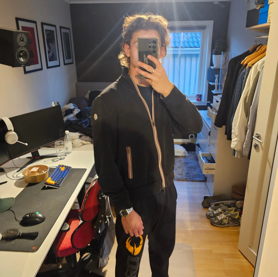 Moncler zip strl. L passar M jag är 183 väger ca 75. Dragledjan lite bråkig i botten, plus litet hål på ärmen. Äkta! Vid frågor eller fler bilder är det bara att skriva