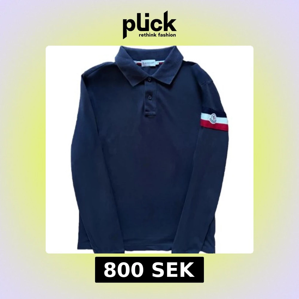 Snygg mörkblå pikétröja i fint skick från Moncler med långa ärmar och klassisk krage. Tröjan har en stilren design med en röd, vit och blå randdetalj på ärmen. Perfekt för en avslappnad men stilfull look. Nypris -:3000kr. Köpte denna av Von Greven och kvitto finns, mvh Theo.