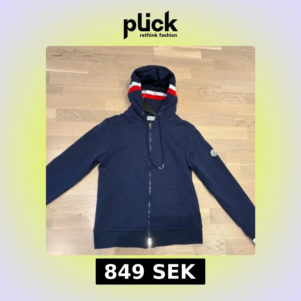 Marinblå Moncler hoodie med dragkedja