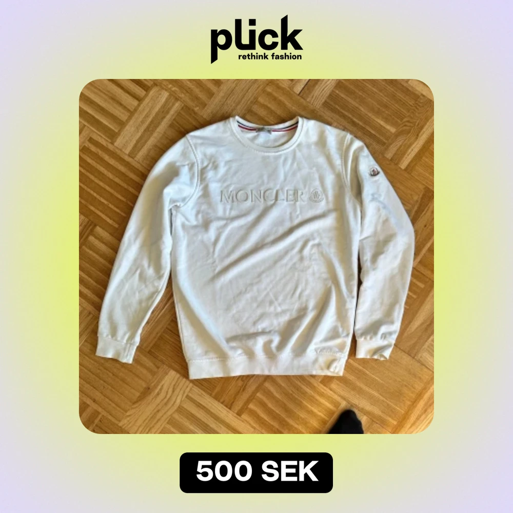 Säljer en stilren vit sweatshirt från Moncler. Den har ett broderat Moncler-logotyp på bröstet och en liten logga på ärmen. Tröjan är långärmad och perfekt för både vardag och lite finare tillfällen. Superbekväm och i bra skick! Storlek S-M