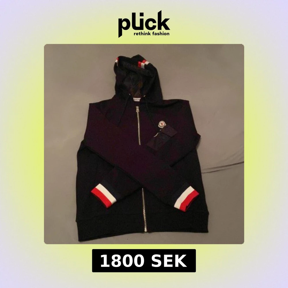 (Svarta moncler byxor medföljer)Svart hoodie från Moncler med hel dragkedja, huva och snygga rödvita detaljer på ärmslut och huva. Aldrig använd. Storlek M men sitter som S. Tröjan har Moncler-logga på bröstet och ärmen, samt ribbade muddar. Perfekt för dig som gillar stilrena streetwear-plagg med exklusiv känsla.