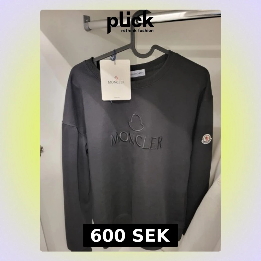 Säljer en svart sweatshirt från Moncler med broderad logga på bröstet och Moncler-märke på ärmen. Tröjan har rund halsringning och långa ärmar. Perfekt för dig som gillar stilrena och exklusiva plagg.