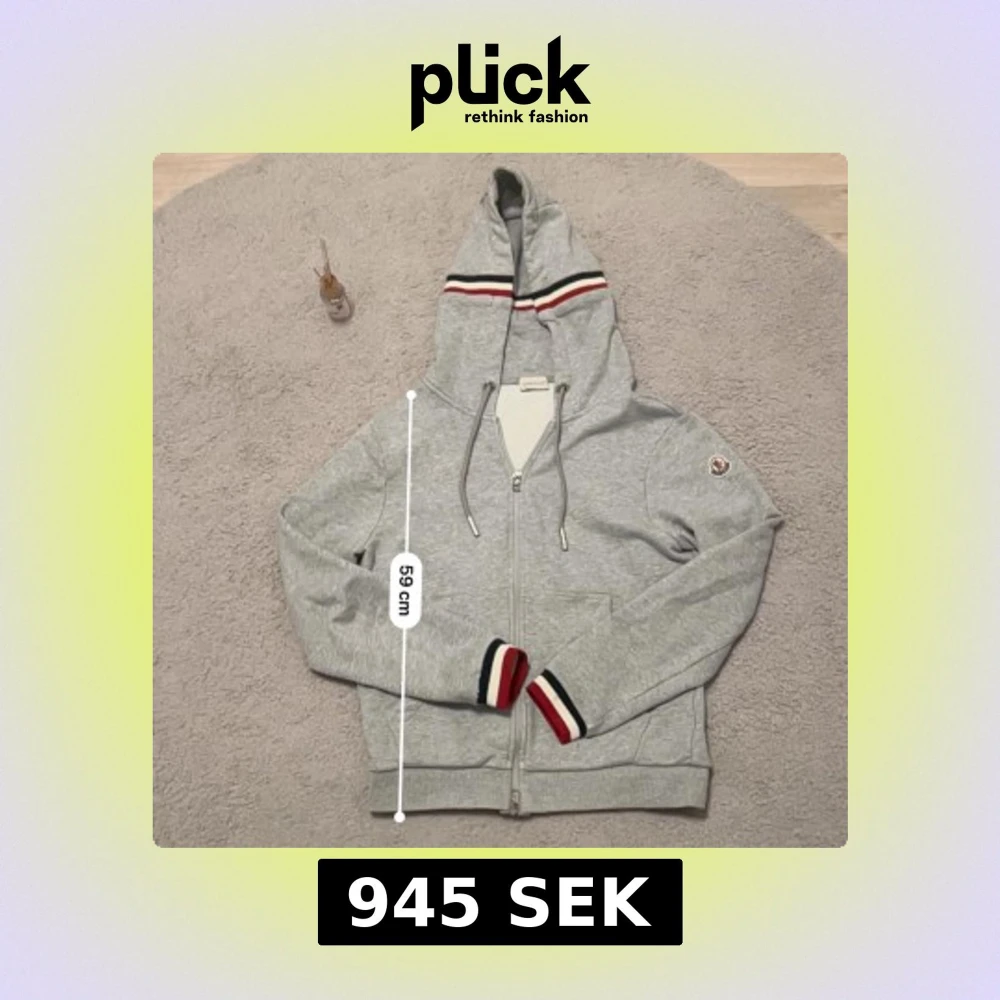 Snygg grå hoodie från Moncler med hel dragkedja, huva och snörning. Ribbade muddar med röd, vit och marinblå detalj samt matchande rand på huvan. Klassisk Moncler-logga på ärmen. .Jag är 181 och väger 65 kg, den passar mig perfekt.Den är i storlek M men passar S också, se även mått på bild 1 och 2. Den har ett litet rev vid bild 4 men annars är det bra kvalitet.Tröjan passar perfekt för chill dagar men även hösten 🍂 och vintern ❄️. 💬 Skriv gärna om du har frågor! 📦 Skickas inom 24 timmar!