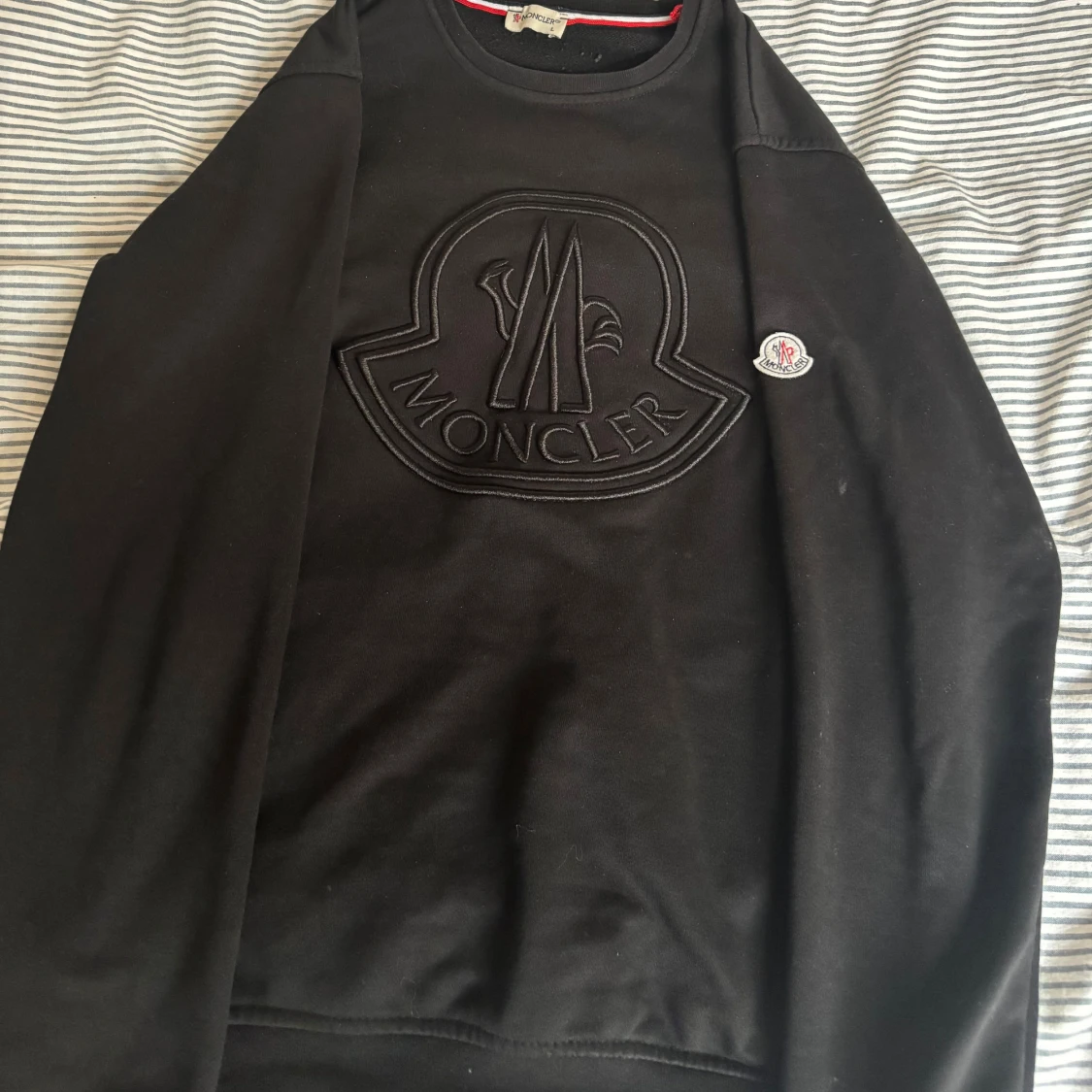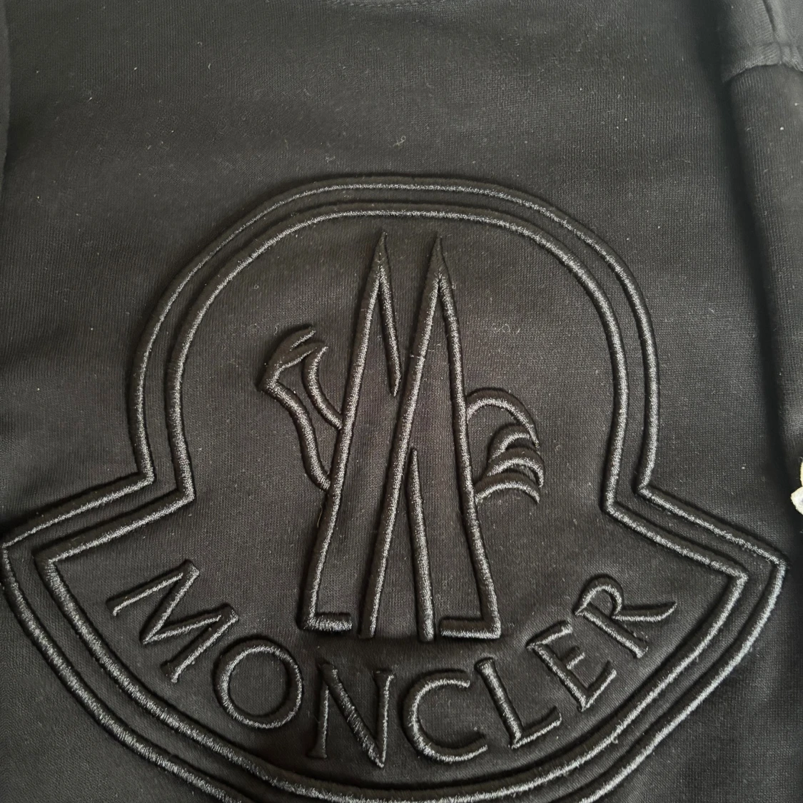 Svart sweatshirt från Moncler med stort broderat Moncler-logo på bröstet och en mindre logga på ärmen. Tröjan har rund halsringning och långa ärmar. Perfekt för dig som gillar stilrena och exklusiva plagg.