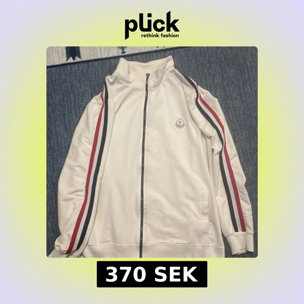 Vit Moncler ziptröja med ränder