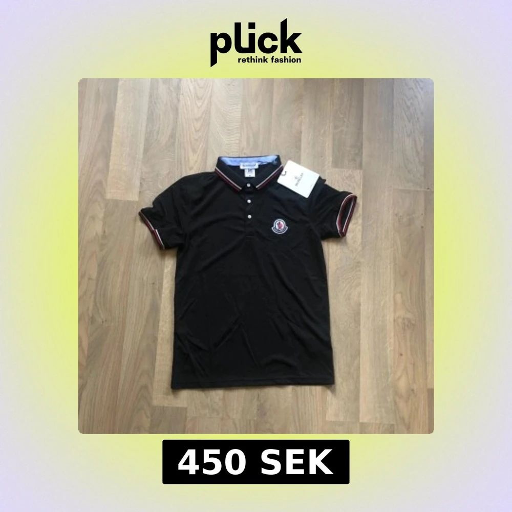 Svart pikétröja från Moncler med klassisk krage och knäppning framtill. Tröjan har Moncler-logga på bröstet och snygga rödvita detaljer på krage och ärmslut. Perfekt för en stilren och sportig look. Storleken är M men passar även S lika bra. Säljer den pga jag vill ändra stilen, har bara använt den ett par gånger. Pris kan diskuteras vid snabb affär. Byten funkar också!