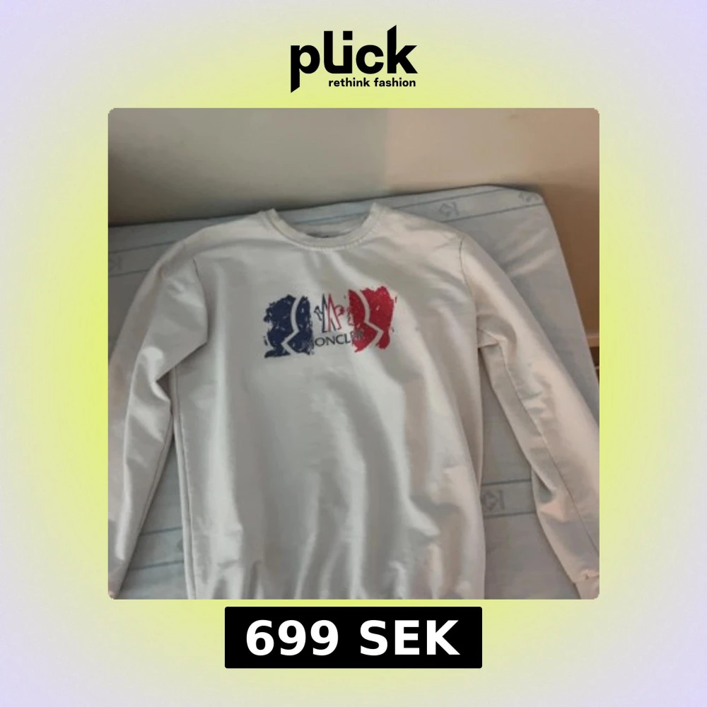 Säljer en vit sweatshirt från Moncler i storlek S/M men står L. Bra skick, pris kan diskuteras