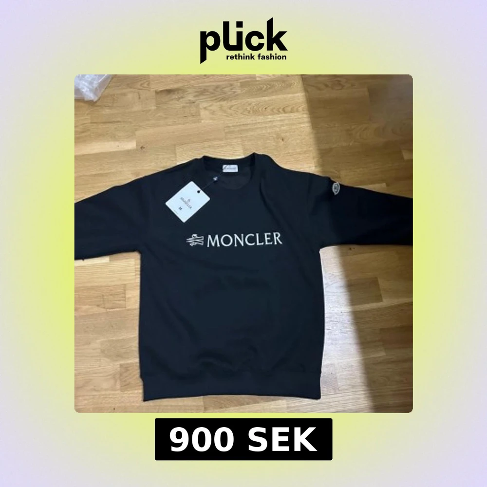 Svart sweatshirt från Moncler med vit broderad logga på bröstet och Moncler-märke på ärmen. Tröjan har rund hals, långa ärmar och ribbade muddar. Perfekt för dig som gillar stilrena och exklusiva plagg med tydlig branding.