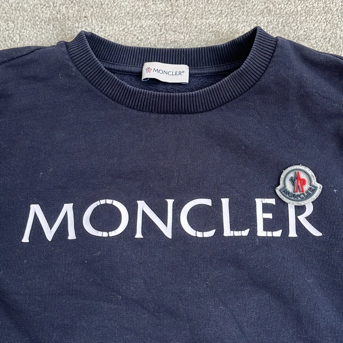 Tja! Säljer nu denna feta Moncler sweatshirten! Den är i riktigt bra skick som ni ser på bilden. Storleken är 14 år, eller 164 cm, men jag skulle säga att den passar upp till 168 cm. Nypris: 3000 kr❌‼️Mitt pris: 1299 kr ✅. Skriv vid minsta fråga eller fundering och pris kan diskuteras!🤝