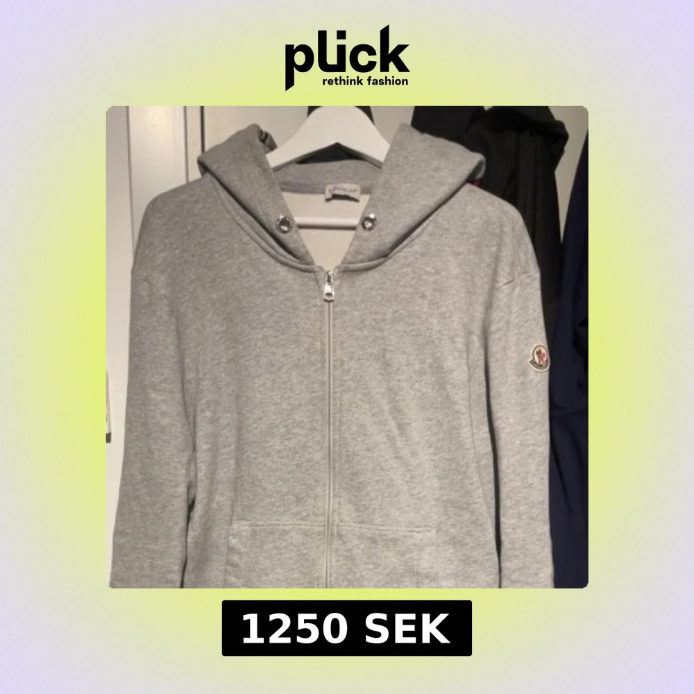 Snygg grå hoodie från Moncler med huva och silverfärgad dragkedja framtill. Tröjan har Moncler-logga på vänster ärm och två fickor fram. Tillverkad i mjuk bomull, perfekt för chill dagar. Stilsäker och enkel att matcha med jeans eller joggers. Snören kan du få med och är jätte enkelt att sätta tillbaka! Pris kan diskuteras.
