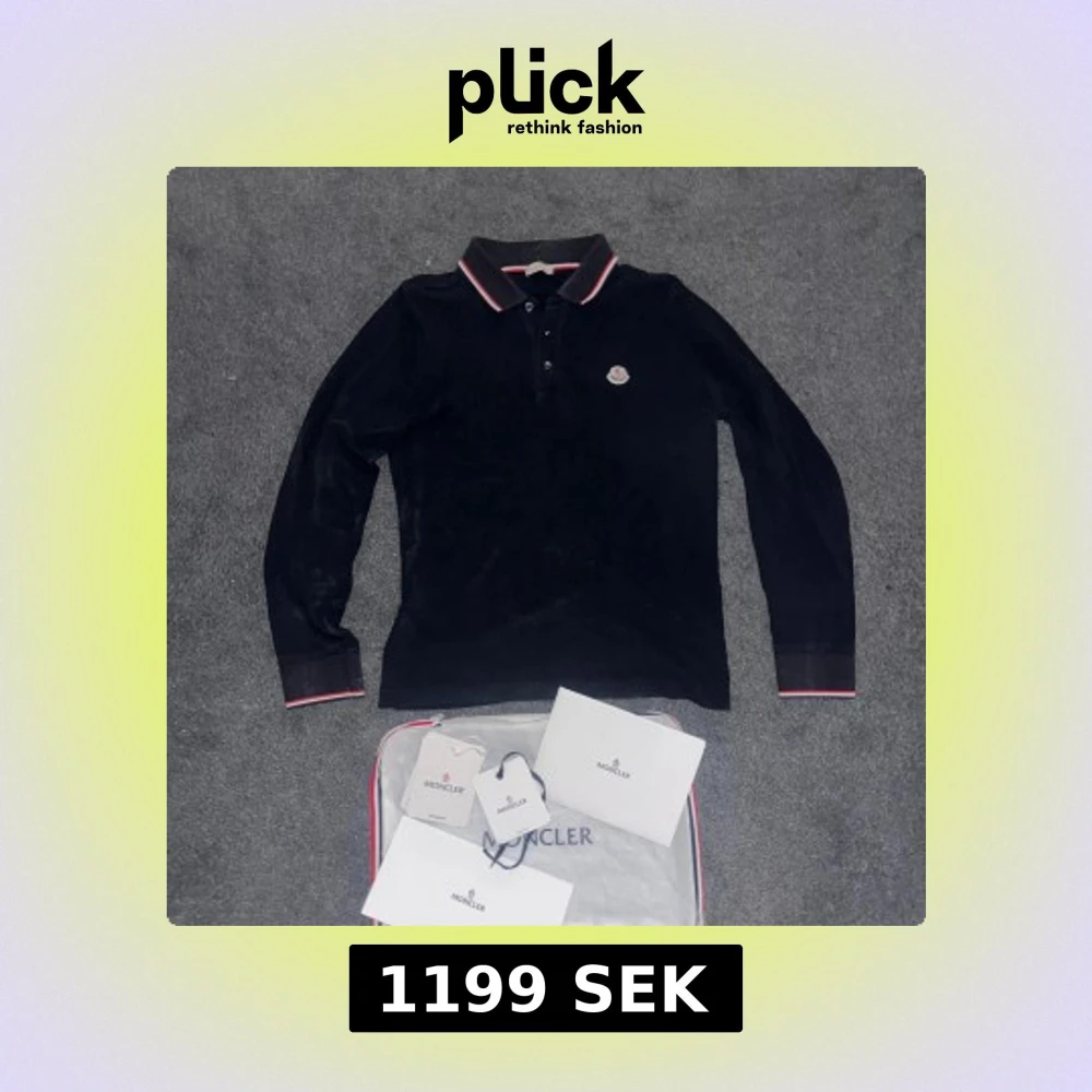 Snygg svart pikétröja från Moncler som är i storlek S och riktigt fint skick! Tröjan är självklart äkta. Moncler tillbehör ingår i köpet. Har ni frågor är det bara kontakta!