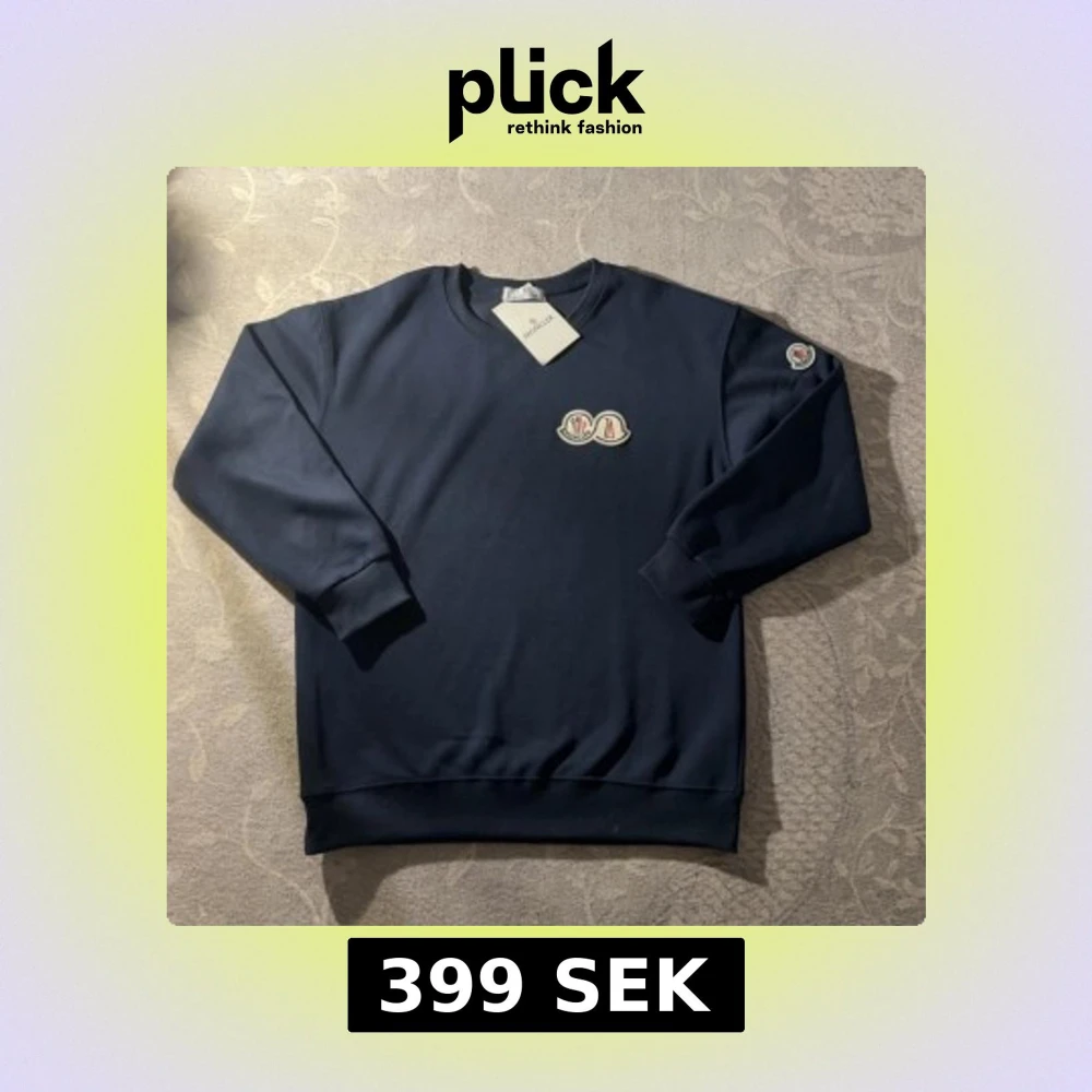 Snygg mörkblå sweatshirt från Moncler med klassisk rund halsringning och broderad logga på bröstet samt ärmen. Tröjan har ribbade muddar och är tillverkad i mjuk bomull, perfekt för en clean och stilren look.