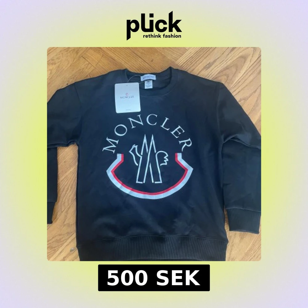Svart sweatshirt från Moncler med stort vitt och rött logotryck på bröstet. Tröjan har rund halsringning, långa ärmar och ribbade muddar vid ärmslut och nederkant. Klassisk och stilren design med Moncler-märke på ärmen.