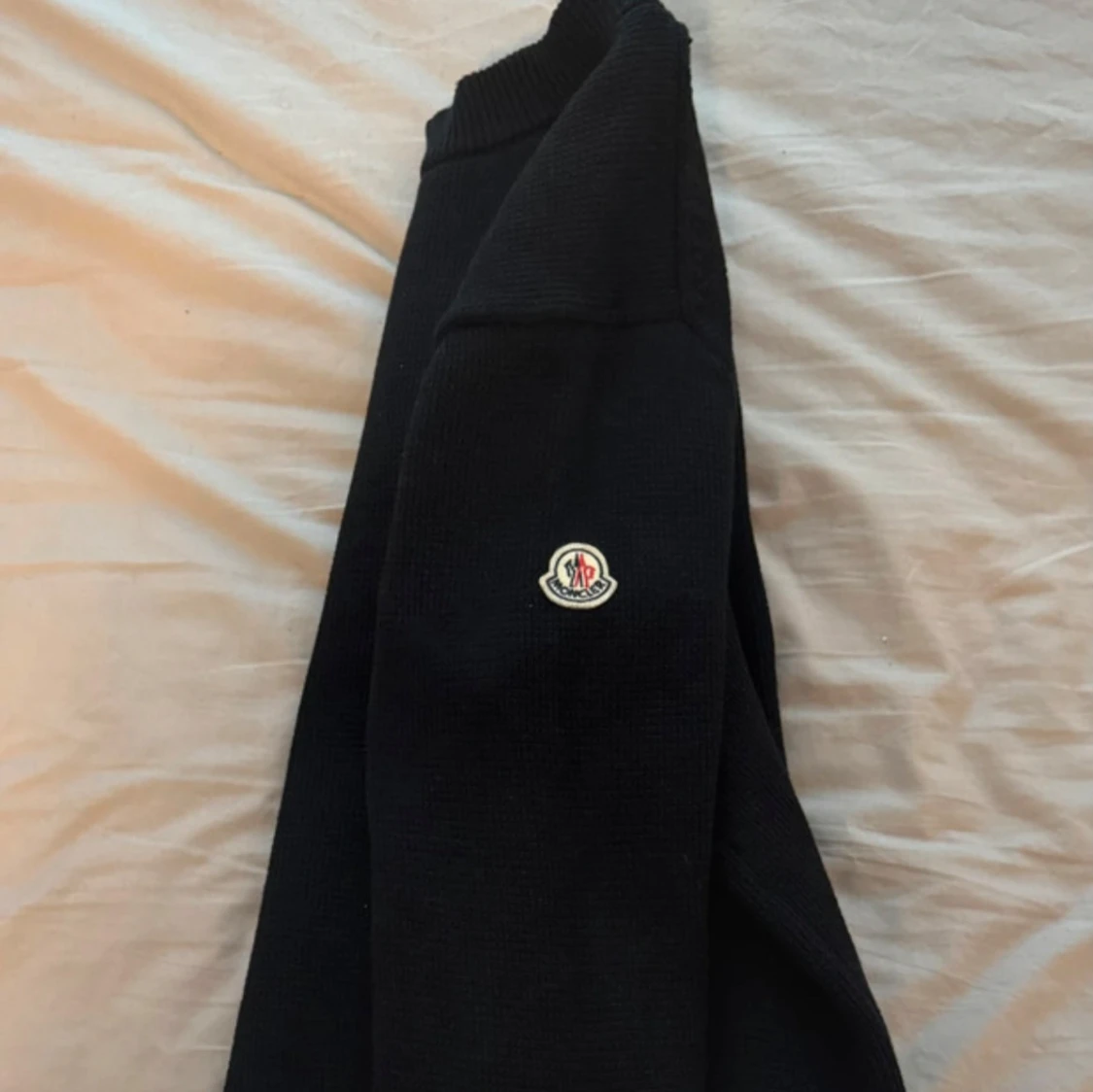 Fin stilren stickad moncler tröja med diskret logo på armen, passar alla tillfällen och den är använd 1 gång helt ny, pris kan diskuteras vid snabb affär.