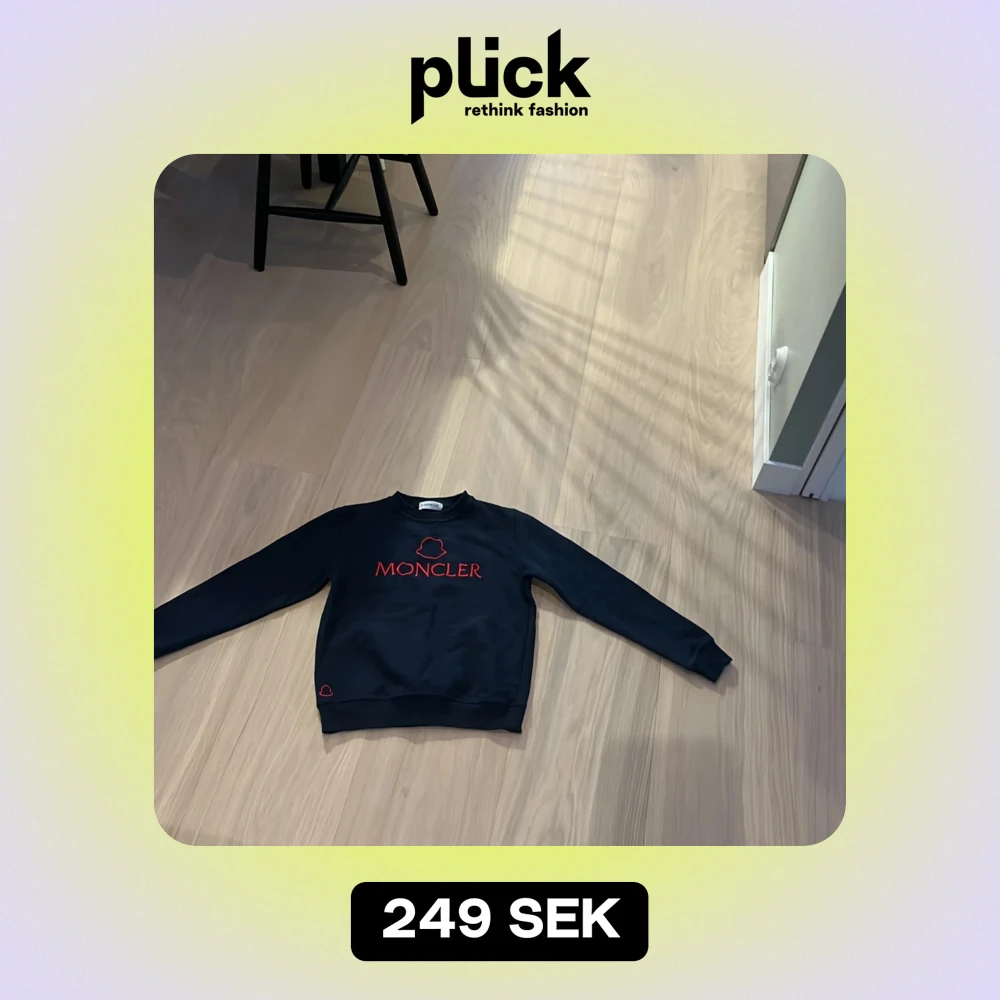 Säljer en snygg mörkblå tröja från Moncler i storlek S. Tröjan har ett coolt rött broderat Moncler-logotyp på framsidan. Perfekt för höst och vinter, med långa ärmar och en bekväm passform. Passar både till vardags och lite finare tillfällen. 🧥✨