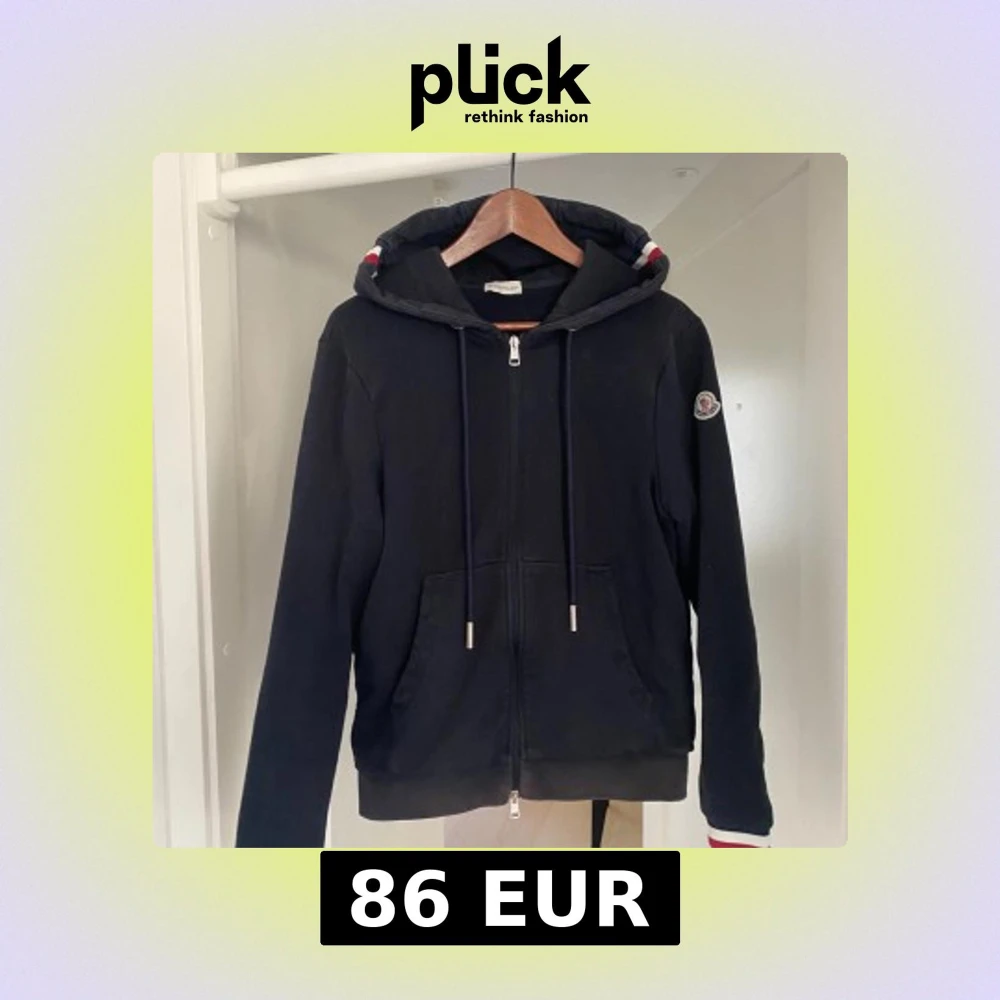 Svart hoodie från Moncler med dragkedja, snörning i huvan och klassisk logga på ärmen. Huvan har snygga ränder i rött, vitt och blått. Tillverkad i mjuk bomull och perfekt för chill dagar. Fickor framtill och ribbade muddar.