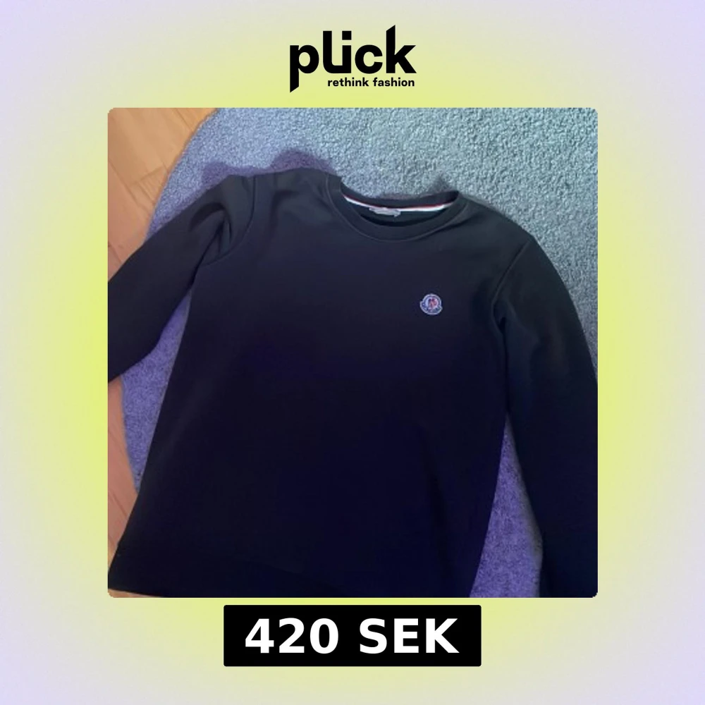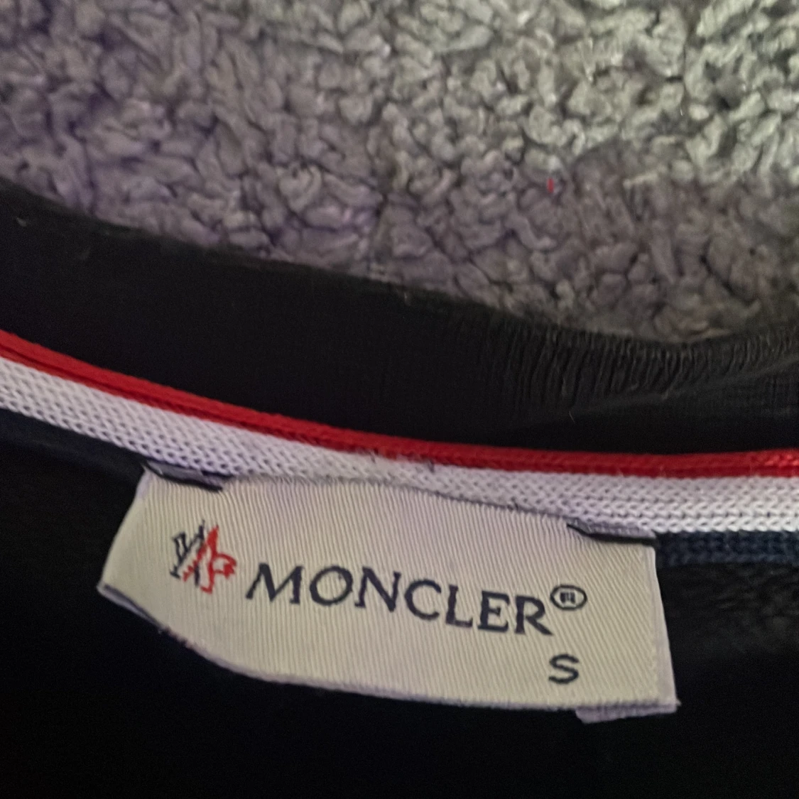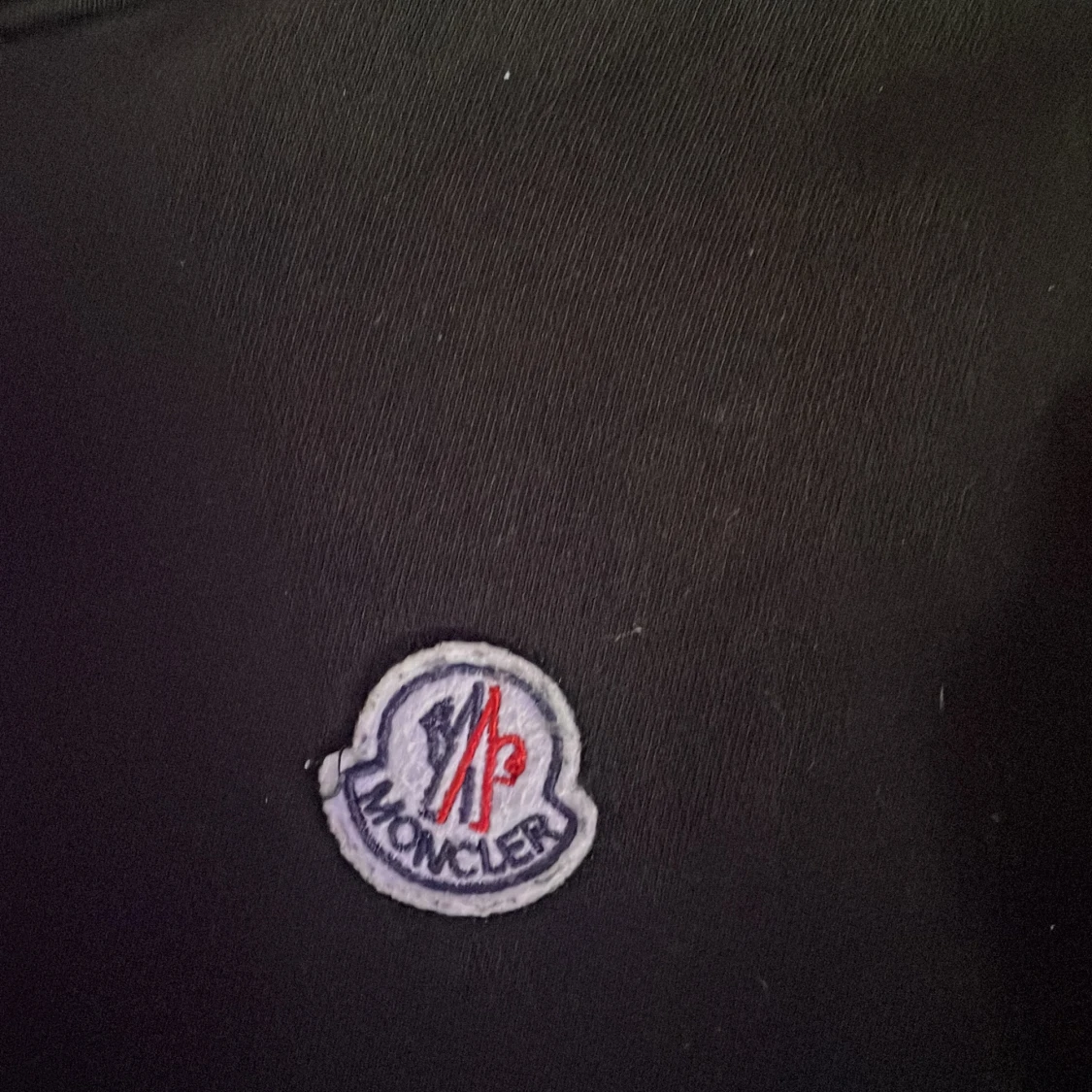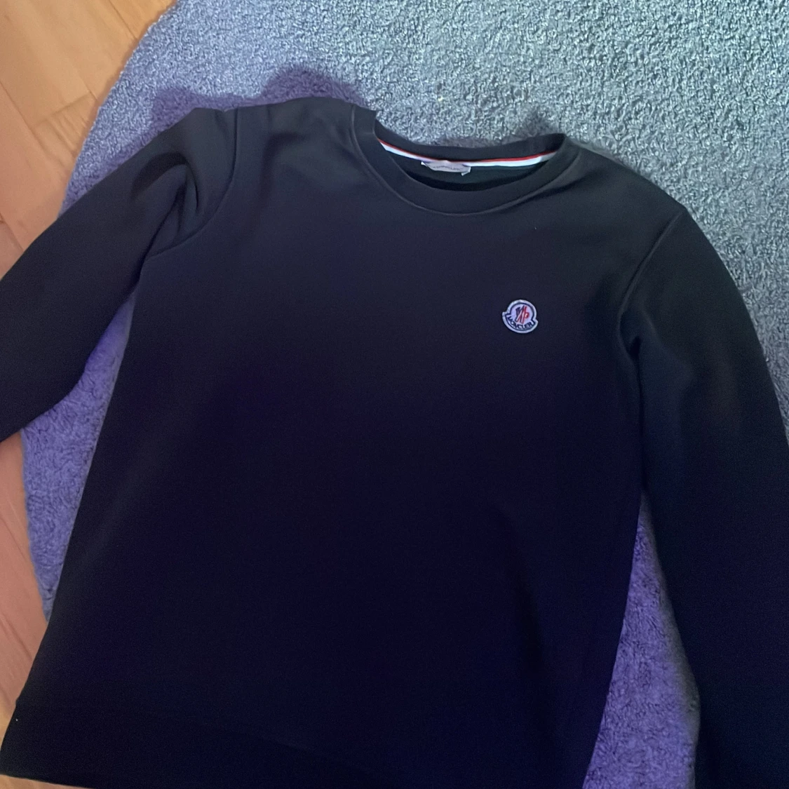 Svart sweatshirt från Moncler i storlek S med rund hals och långärmad passform. Tröjan har Moncler-logga broderad på bröstet och en stilren design utan mönster eller extra detaljer. Materialet känns mjukt och har en lätt stretch. PS QR KODEN HAR BLIVIT BORT TVÄTTAD