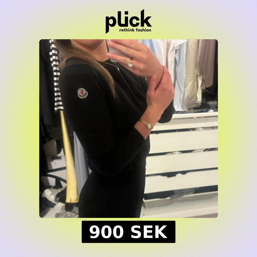 Säljer en svart långärmad tröja från Moncler med rund halsringning och Moncler-logga på ärmen. Köpt för flera år sedan så har tyvärr inget kvitto eller liknande. Använd några gånger men inga synliga defekter. Har krympt något i tvätten däremot.😊