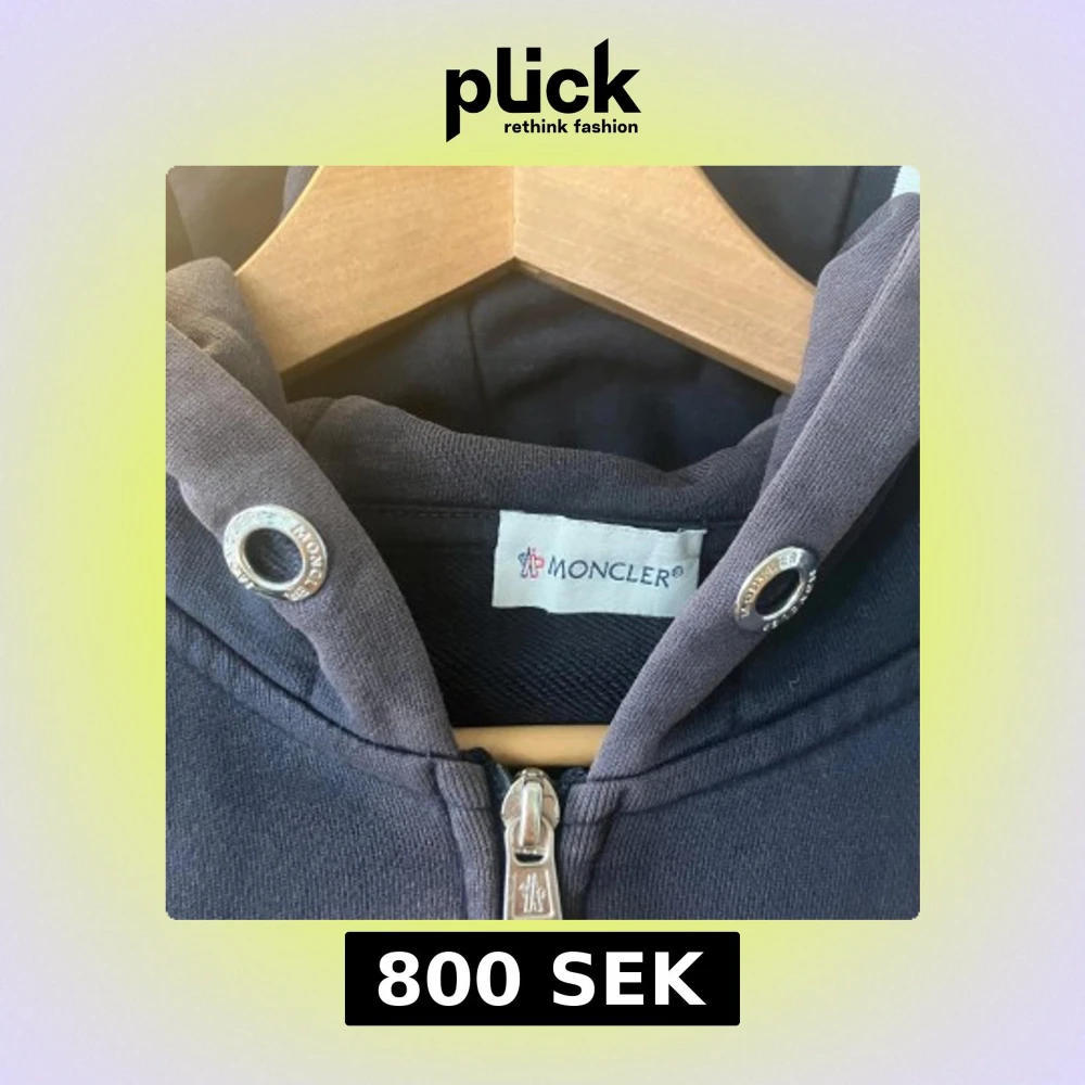 Säljer en snygg mörkblå hoodie från Moncler med dragkedja och huva. Tröjan har långa ärmar och en klassisk Moncler-logga på ärmen. Perfekt för en stilren och bekväm look.